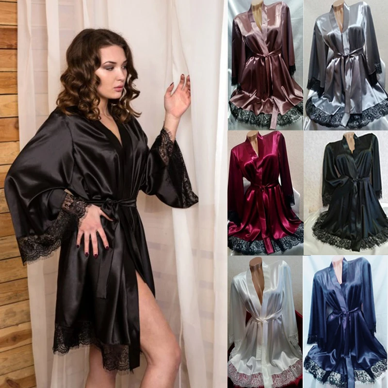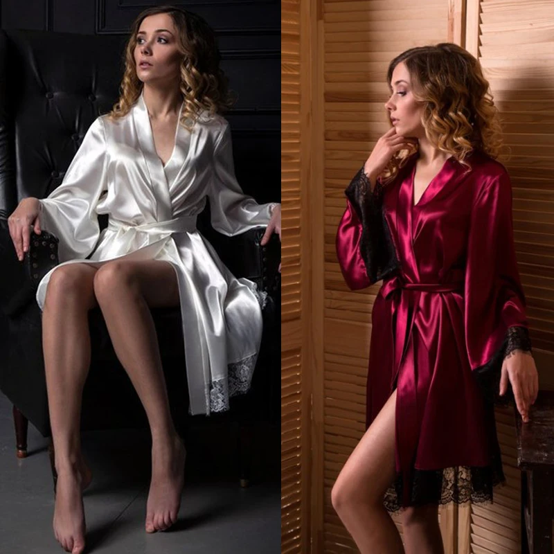 Материал:Шелк Атлас Цвет: белый, черный, серый, темно-синий, винно-красный, розовый Стиль:Сексуальная одежда для снаБанный Халат
