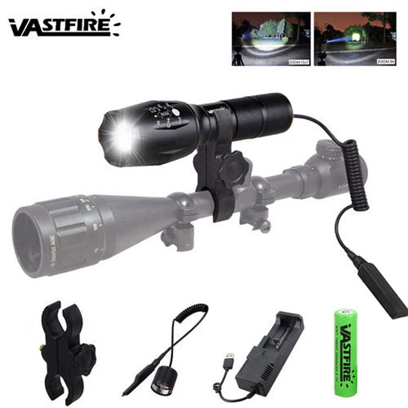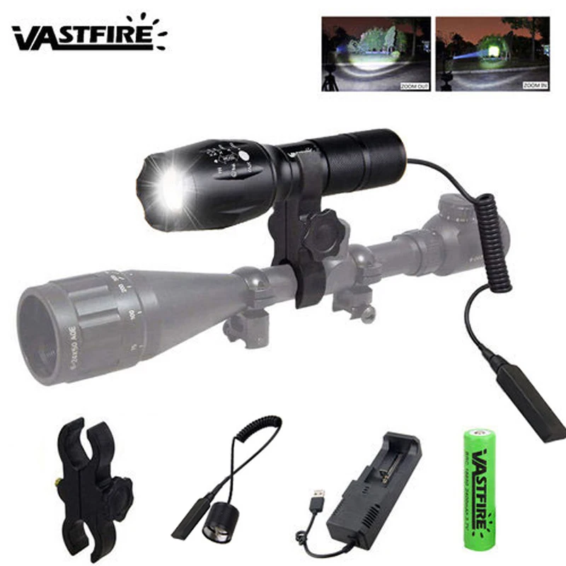 Тактическая светодиодная охотничья вспышка A100 Q5 T6, масштабирусветильник, 350 ярдов, оружейное оружие, легкая винтовка, прицел, Страйкбольное крепление, переключатель 18650, зарядное устройство USB