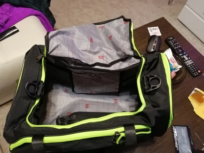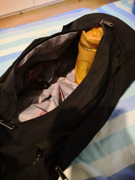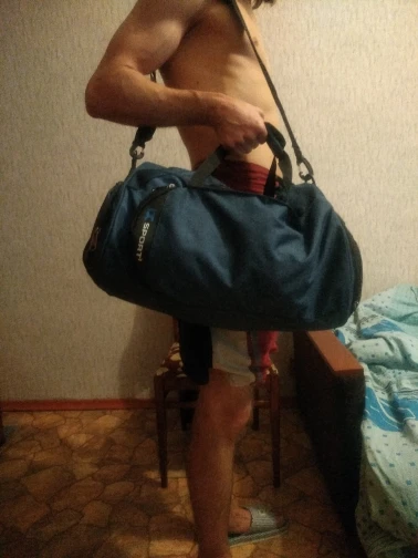Сумка ОФИГИТЕЛЬНАЯ! Достал и уже было расстроился, что слишком маленькая, хотя брал большую. Но на удивление все влезло. На фото все, что ношу в зал, все вместилось. Бутылка для воды объемом 2,2 л, чтоб вы понимали. Доставка - неделя курьером до двери в Томск. Огромное спасибо. Надеюсь прослужит долго.