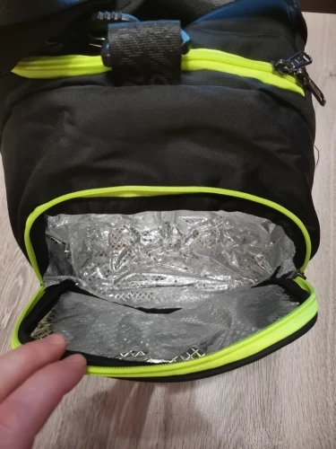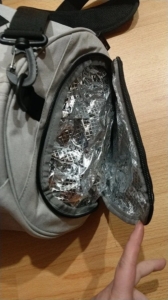 Сумка отличная, но размер взял для себя слишком большой. По фото было не понятно насколько глубокий отсек под обувь, так вот он на всю длину сумки. То есть складывается одежда на ровный низ, потом сбоку в этот "носок" обувь и оставшееся место заполняется прочим. С другой стороны где сетка отсек с фольгой, туда залезает бутылка холодной воды 0,7.