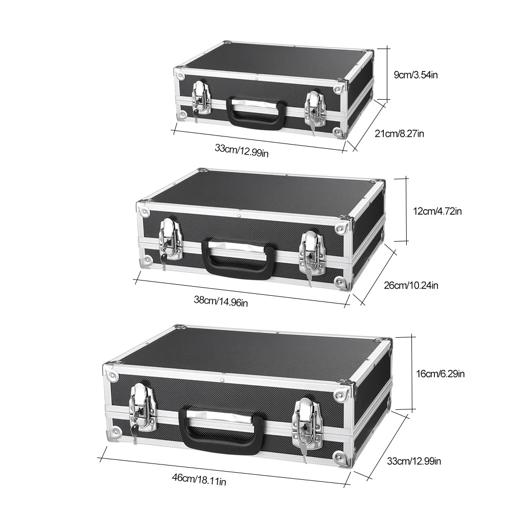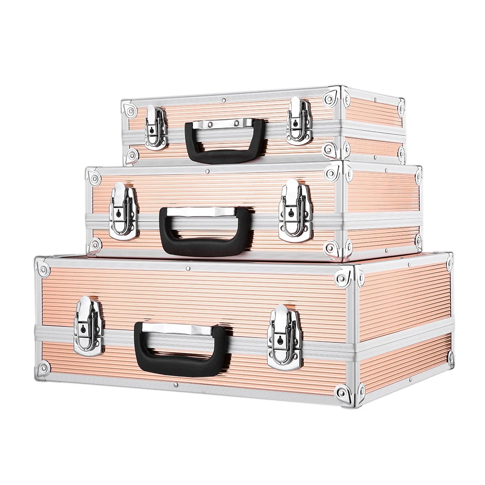 Это высококачественная Универсальная коробка для хранения, которая оснащена панелью ABS, алюминиевой рамой и замками для ключей. Он сохранит ваши инструменты и вещи в безопасности и удобен для переноски везде. Состоит из 3 различных размеров коробок, этот набор будет в значительной степени соответствовать вашим разным потребностям чехол. Не стесняйтесь покупать!Особенности:Черные цвета с крошечным алмазным узором, довольно классные.Отличный корпус из АБС-пластика и алюминиевая рама, железные уголки, прочные и долговечные.3 шт. в комплекте, большие/Средние/маленькие ящики для инструментов в соответствии с различными потребностями.Каждая коробка оснащена 2 ключами, обеспечивают максимальную безопасность.Прочная ручка посередине для удобной переноски.Может использоваться как ящик для инструментов, многоцелевой ящик для хранения и чехол для переноски для путешествий.Тест, который мы прошли:Ручка, которую мы использовали, прошла тест на содержание PAHs для обеспечения его качества.Характеристики:Цвет: черный/розовое золото (опционально)Материал: алюминий + МДФ + железоБольшой размер коробки: 46*33*16 см/18,11*12,99*6,29"Средний размер коробки: 38*26*12 см/14,96*10,24*4,72"Размер маленькой коробки: 33*21*9 см/12,99*8,27*3,54"Продукт Вес (3 шт.): 4,6 кг/10.14LBРазмер посылка: 47,5*18,5*37,5 см/18,70*7,28*14,76"Посылка Вес (3 шт.): 5,3 кг/11.68LBПосылка включает в себя:1 * большая коробка1 * средняя коробка1 * маленькая коробка6 * ключи
