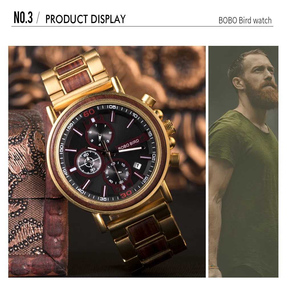 Часы BOBO BIRD Wood reloj hombre мужские, лучший бренд, роскошный стильный хронограф, военные часы, рождественский подарок для Него, дропшиппинг