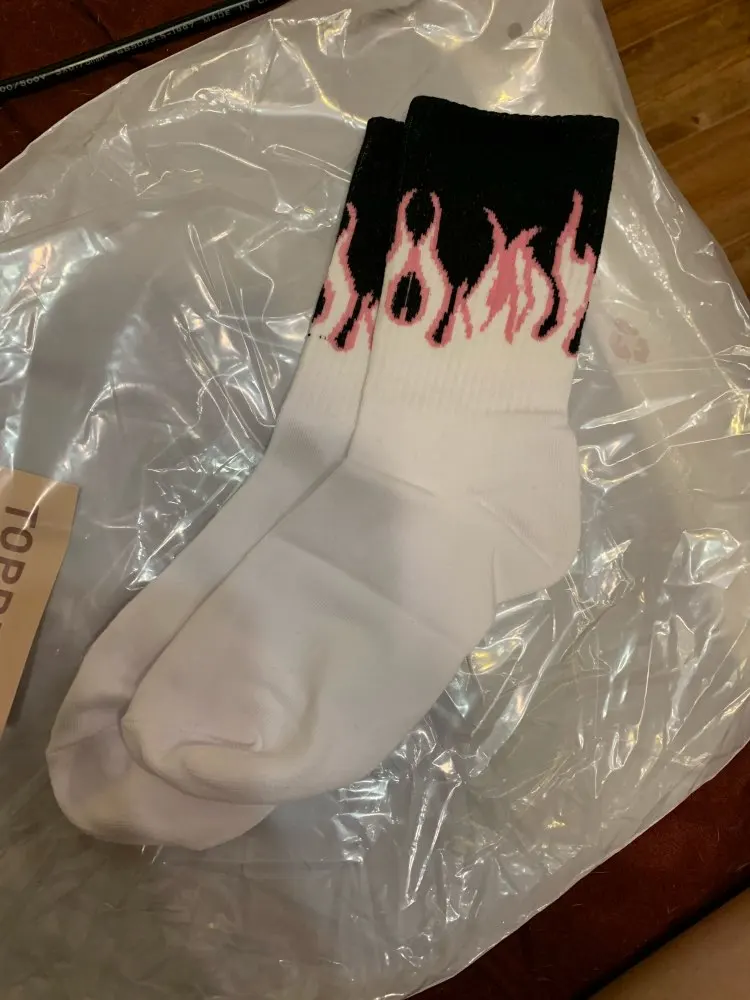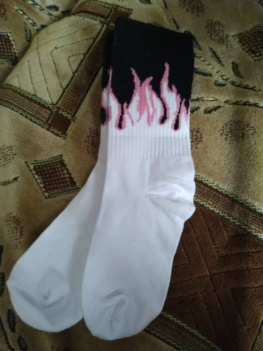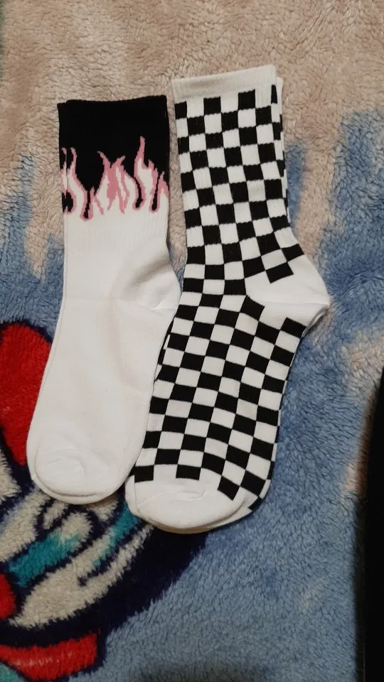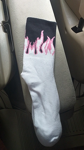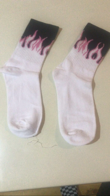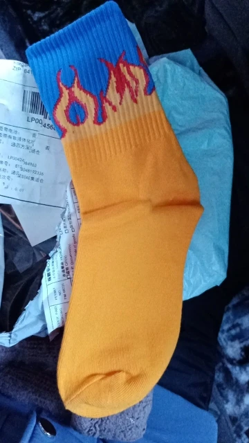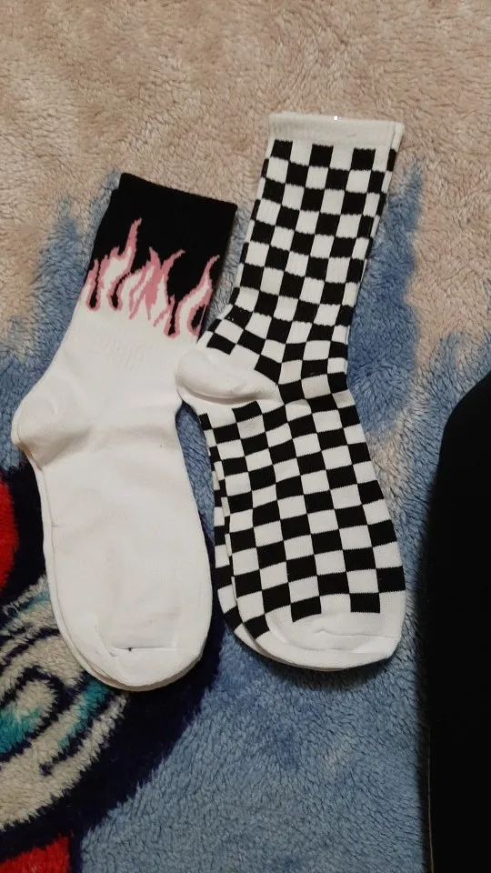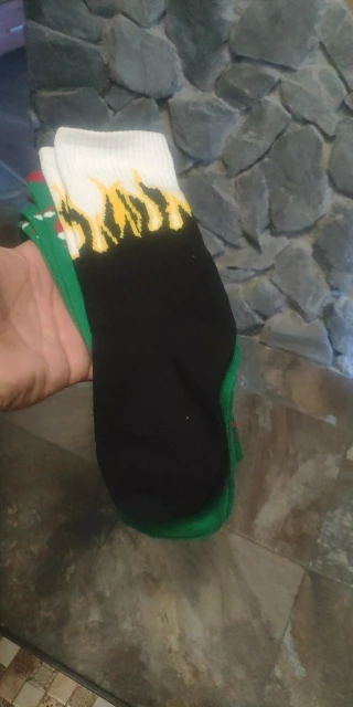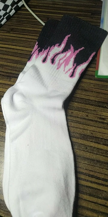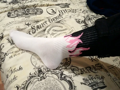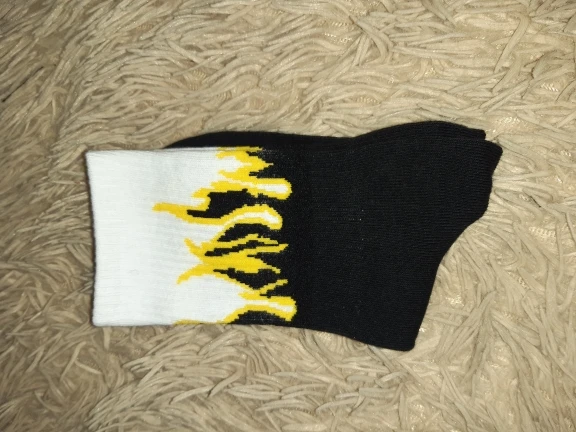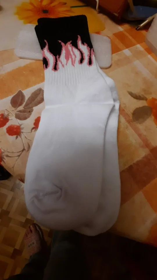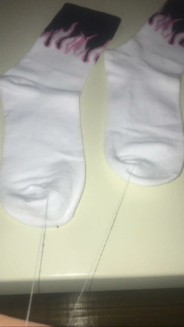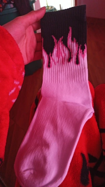 Я получил эти довольно быстро, я думаю, что в течение месяца это не то, что я ожидал при заказе на этом сайте. Носки приятные на ощупь, материал приятный, но принт может быть лучше. Эти носки делают то, что там, где есть белые линии, когда они растягиваются, как показано на моей фотографии. Это не так плохо, только в черной части носка.