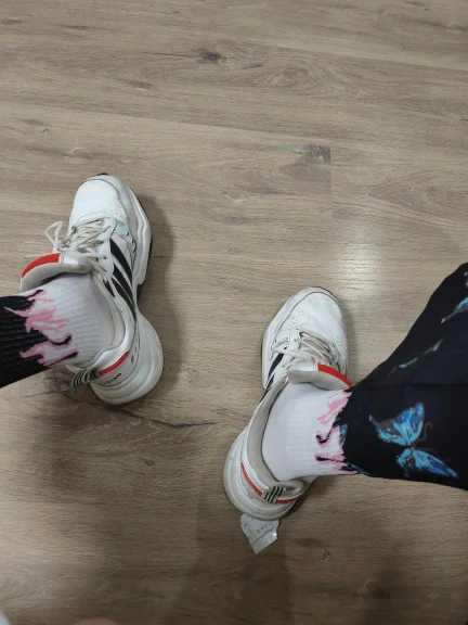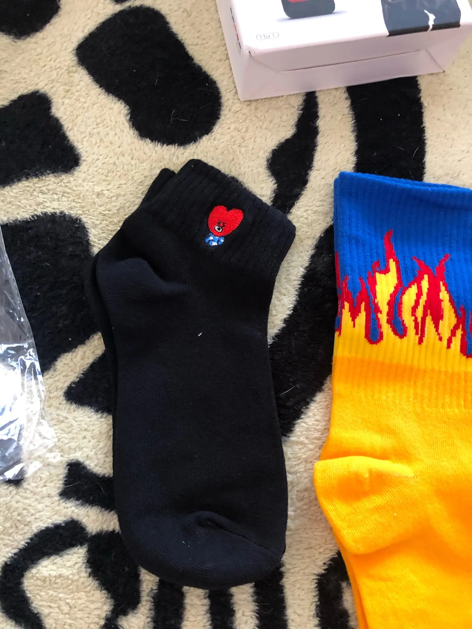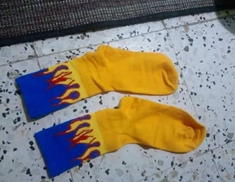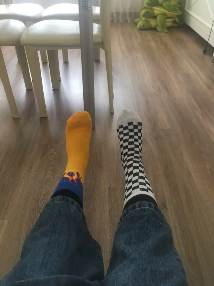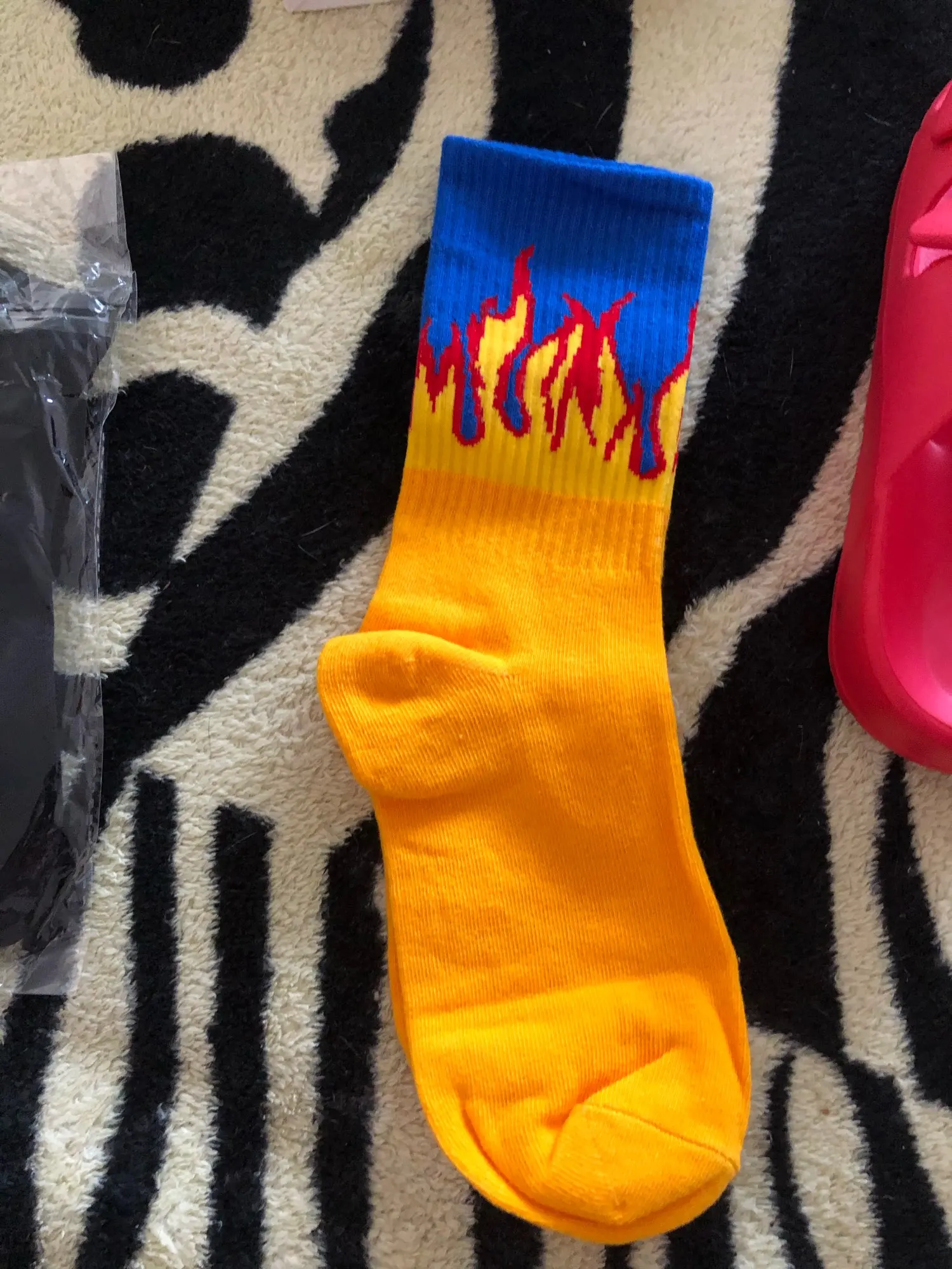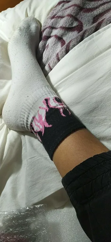 Я получил эти довольно быстро, я думаю, что в течение месяца это не то, что я ожидал при заказе на этом сайте. Носки приятные на ощупь, материал приятный, но принт может быть лучше. Эти носки делают то, что там, где есть белые линии, когда они растягиваются, как показано на моей фотографии. Это не так плохо, только в черной части носка.