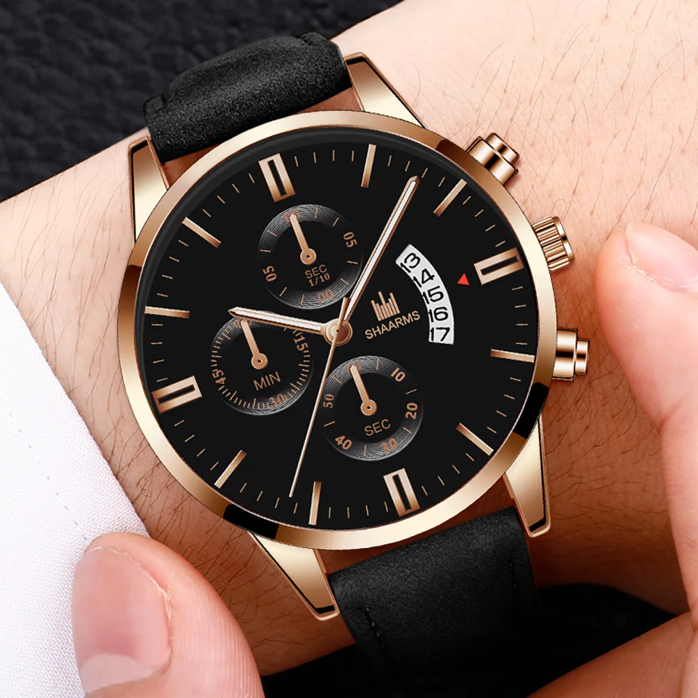 Часы мужские, повседневные, кварцевые, с кожаным ремешком, черные, ...