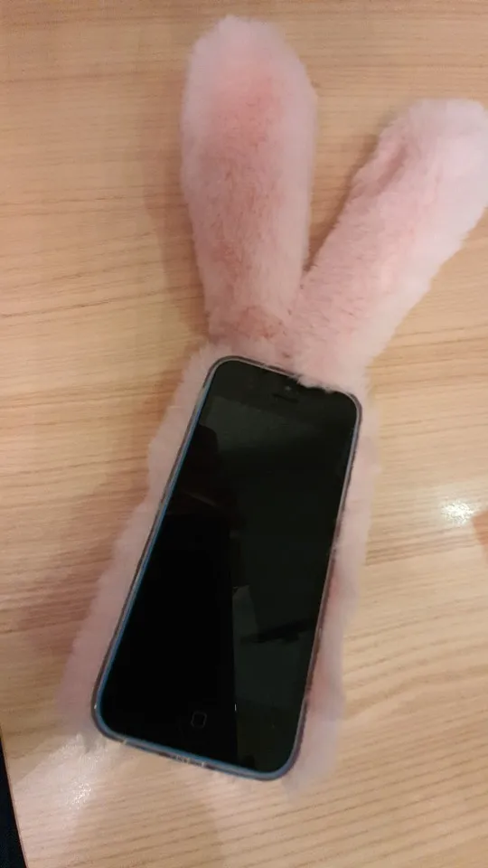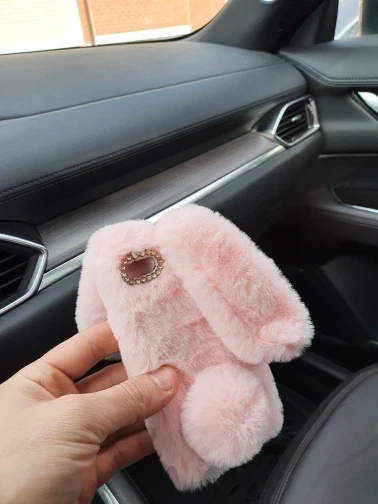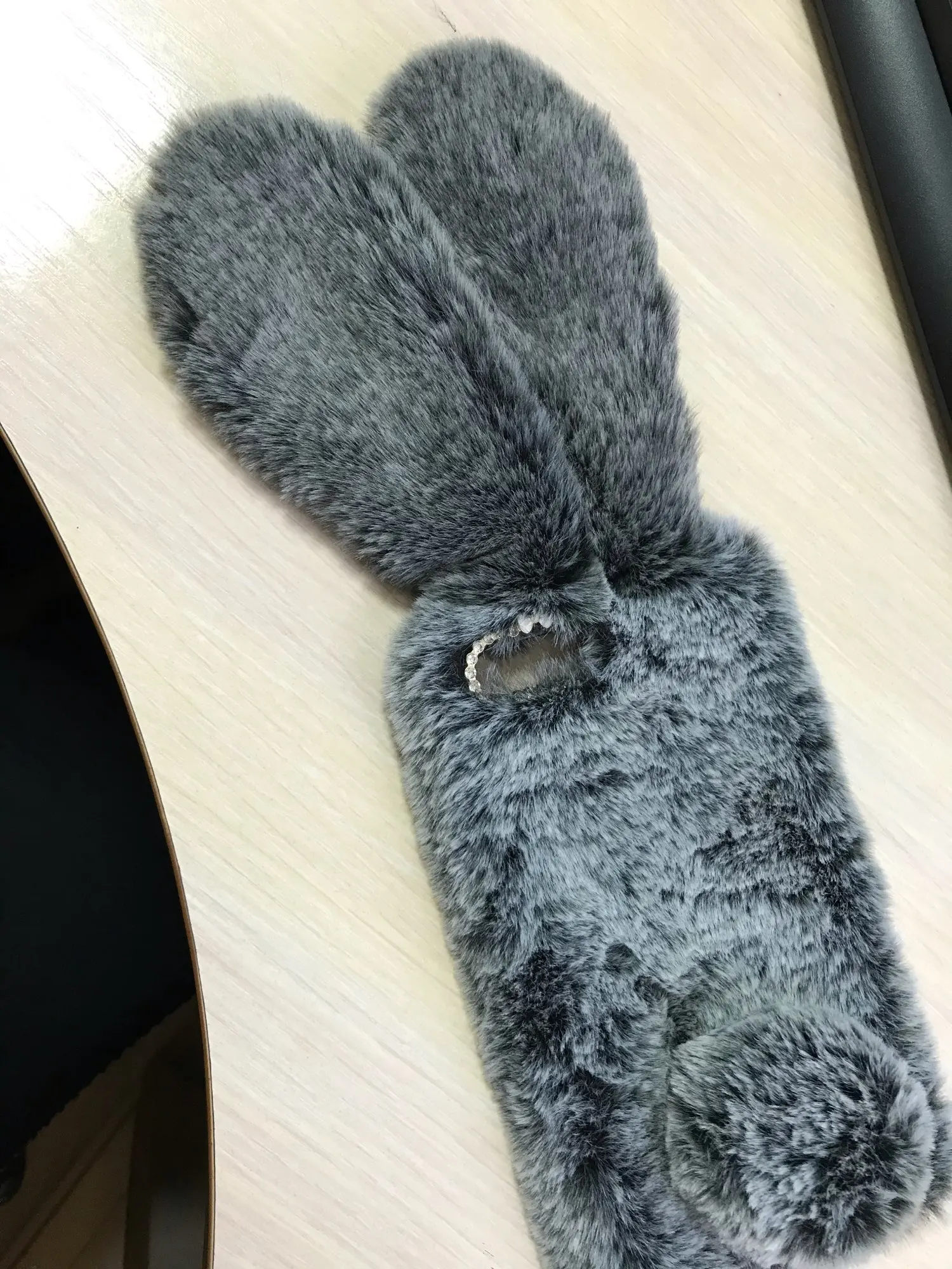 3D Rabbit Ears Furry fluffy Fur Plush Warm Cover Case