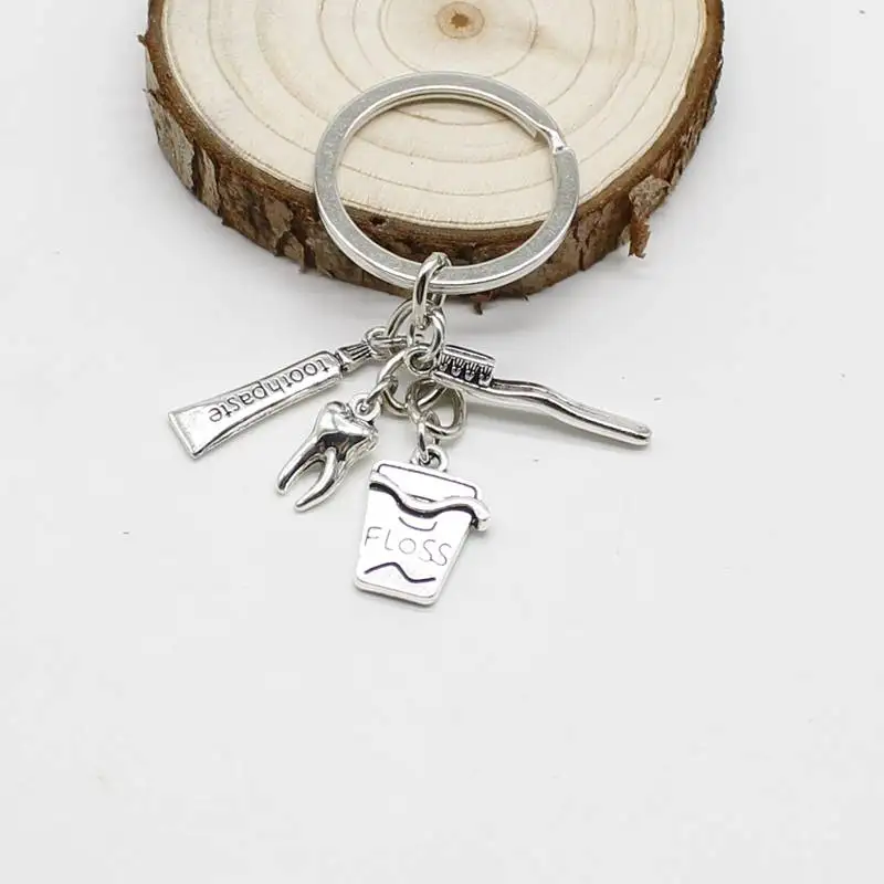 Античный брелок стоматолог помощник стоматолога гигиенист подарок зубная паста зубная щетка брелок для зубов