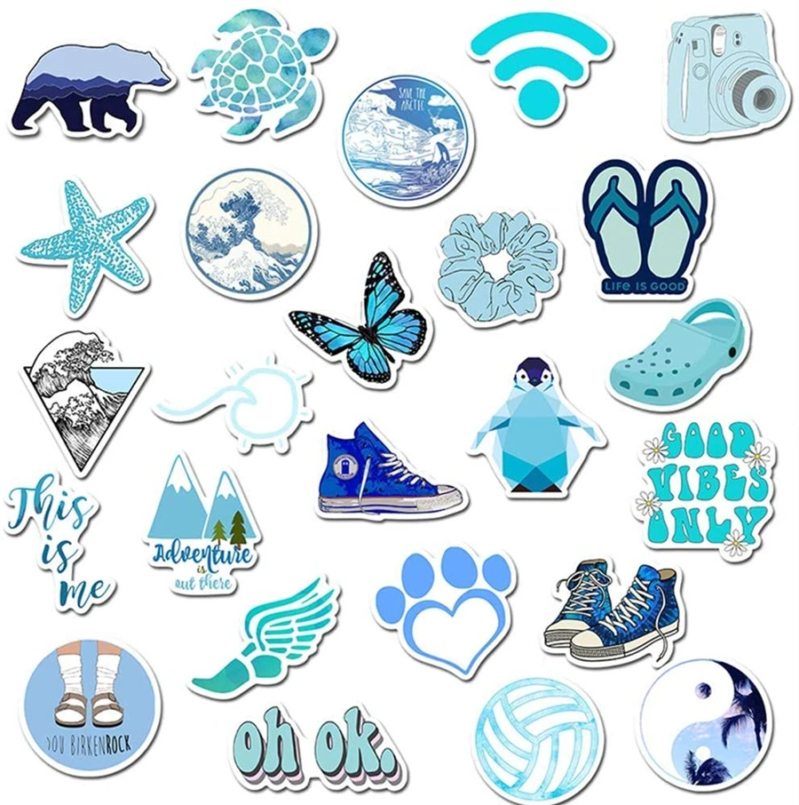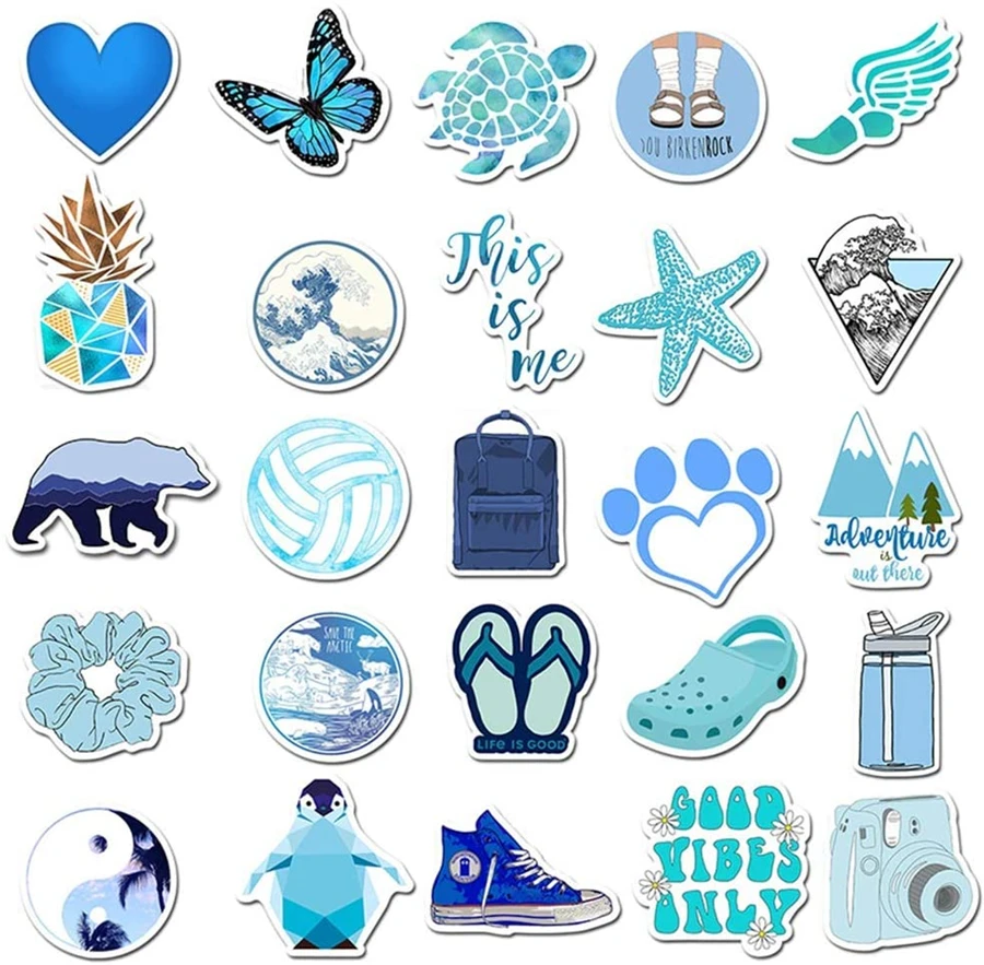 Cute Blue VSCO Style Stickers ForRoom,Sketeboard,Water Bottle,iPad,PS4