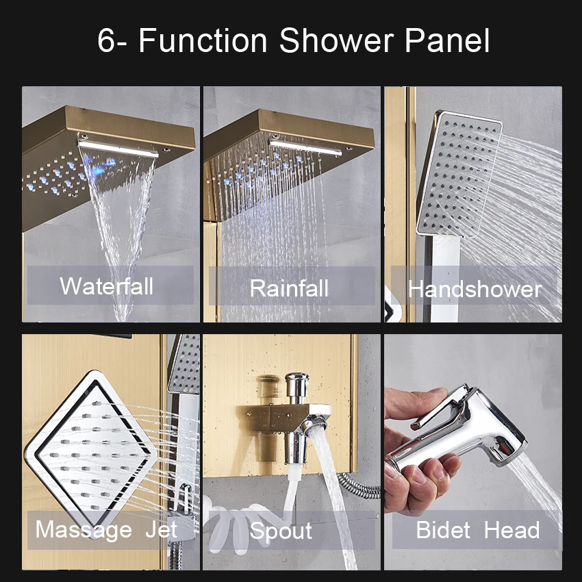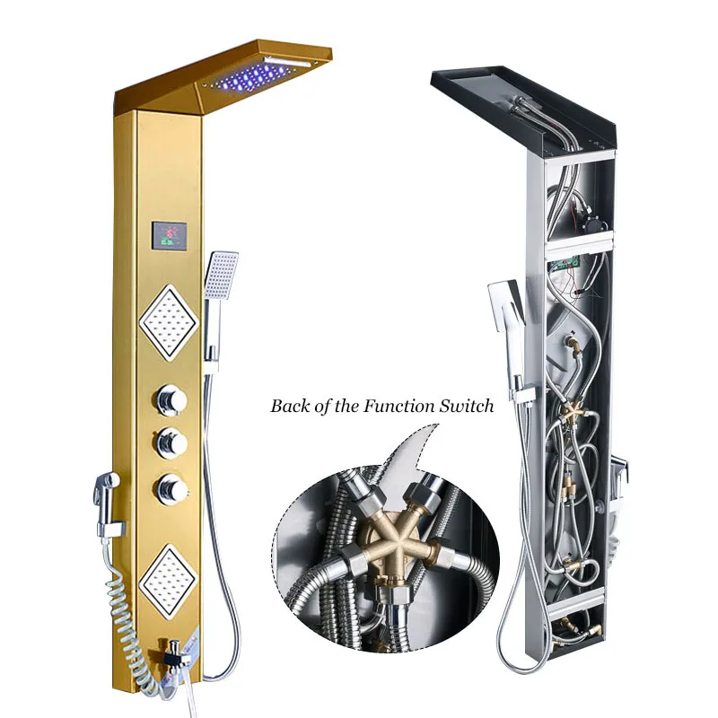 Черная душевая панель для ванной комнаты, золотистый дождевой смеси...