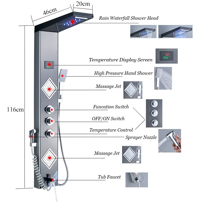 Душевая панель Senlesen из нержавеющей стали со светодиодной подсве...