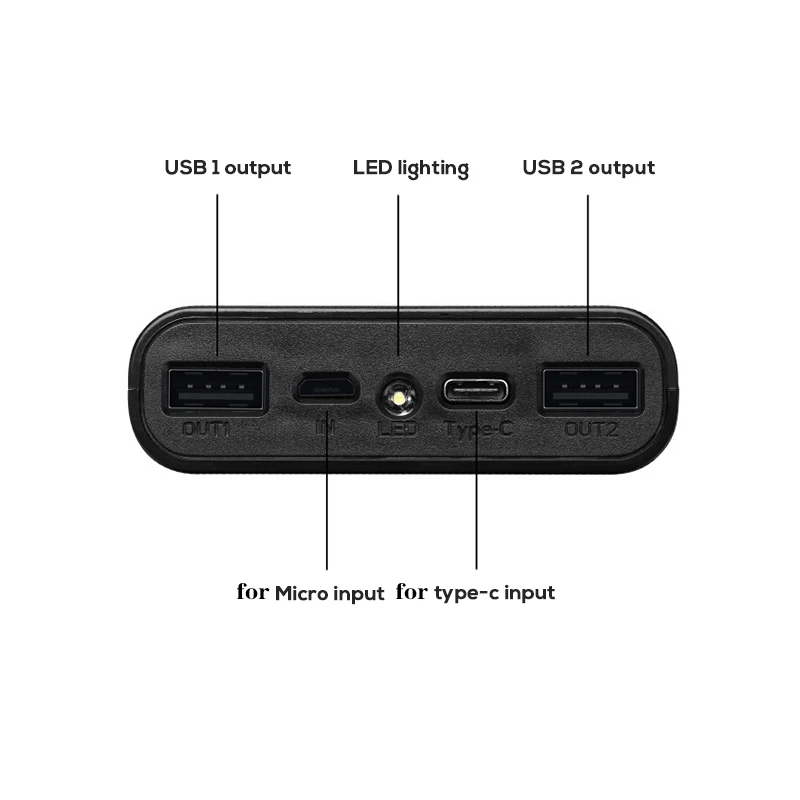 Micro Type C USB порты Внешний Аккумулятор Чехол 18650 батарея светодиодный светильник для зарядки цифровой дисплей запасные части внешнего зарядного устройства Примечание:Есть несколько причин для этого: Дисплей автоматически определяет ток. Если ток не достаточно большой, он отобразит 2 В/1 А; Если ручной провод поддерживает 1A, он отобразит 1A; Если телефон полностью заряжен, он отобразит 1A.