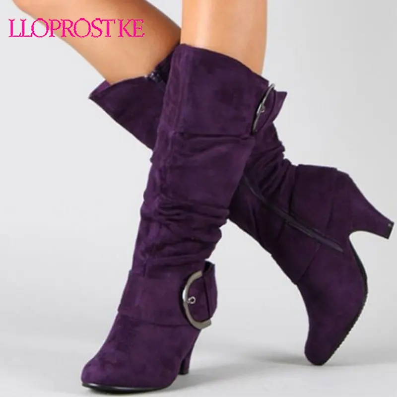 Женские сапоги до колена Lloprost ke, из искусственной замши, с пряжкой, на каблуке-шпильке, большие размеры 43, 2019, зимние сапоги