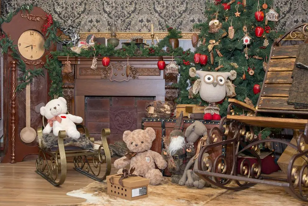 Каписко фоны для фотосъемки Рождественская елка камин Подарки Игруш...