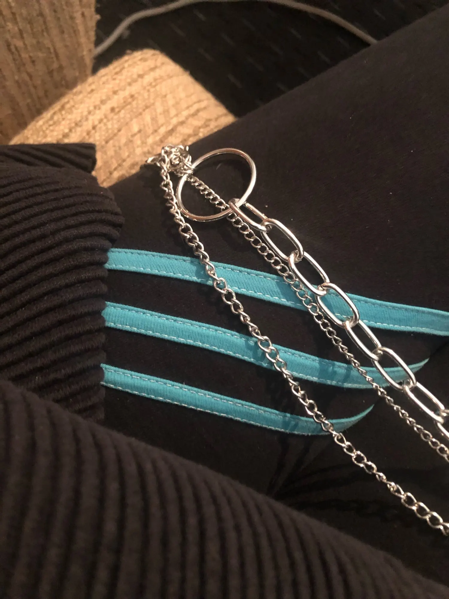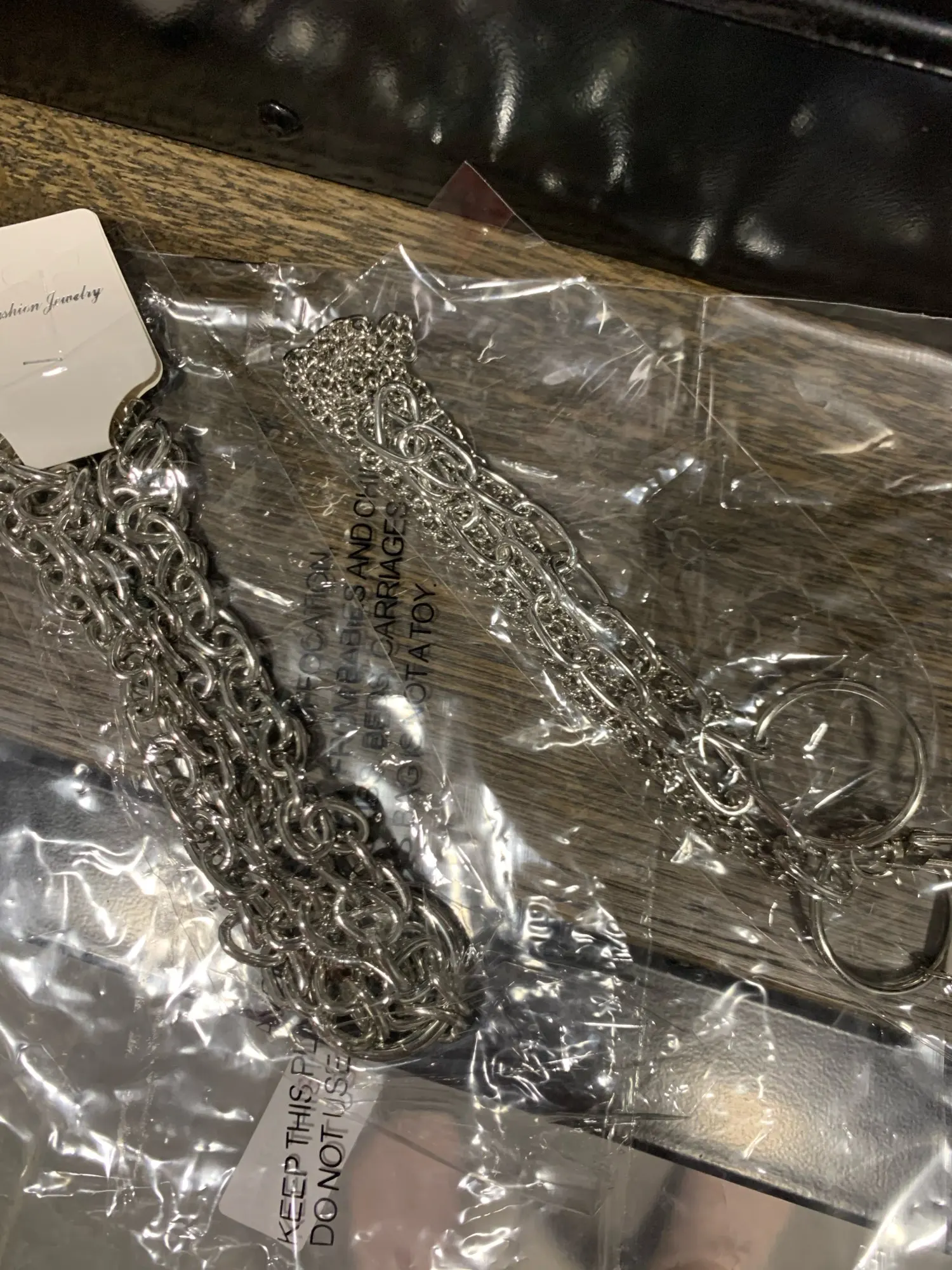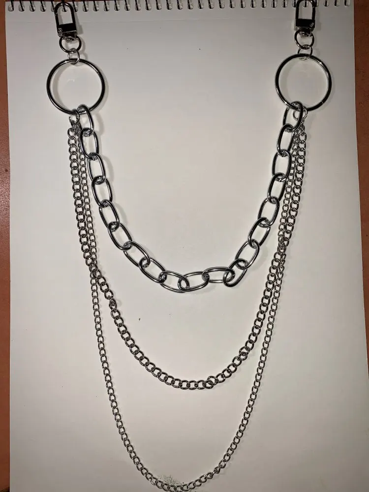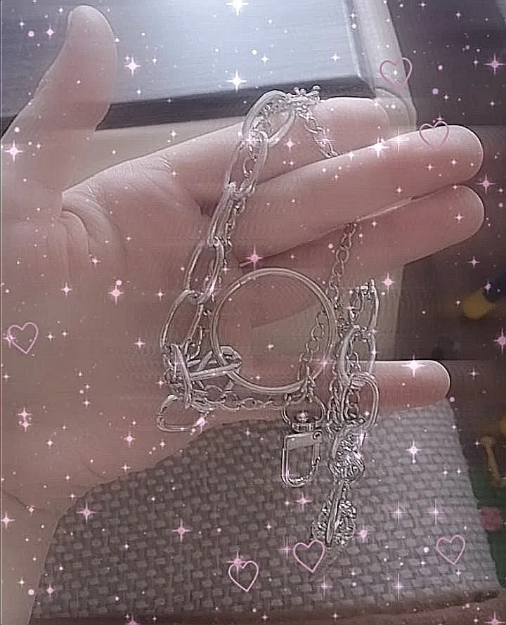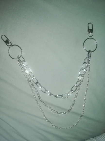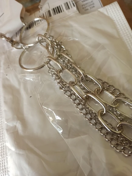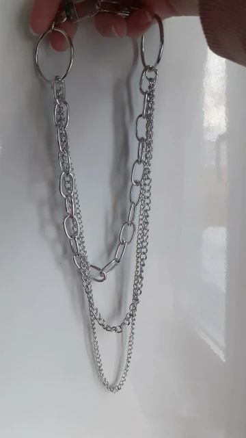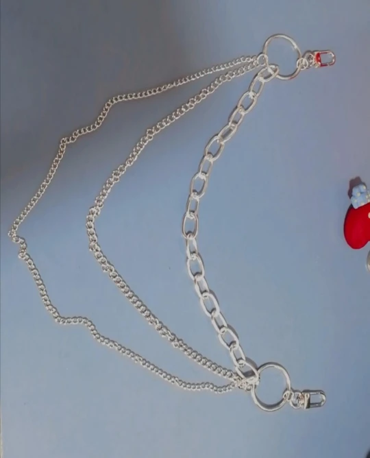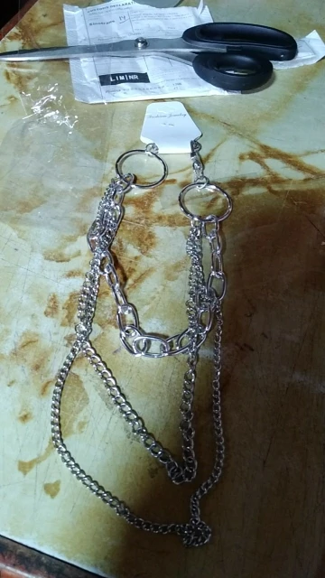 Брак на одной из цепочек, звенья прилипли друг к другу. Откусили и переделали. Смотрится круто!