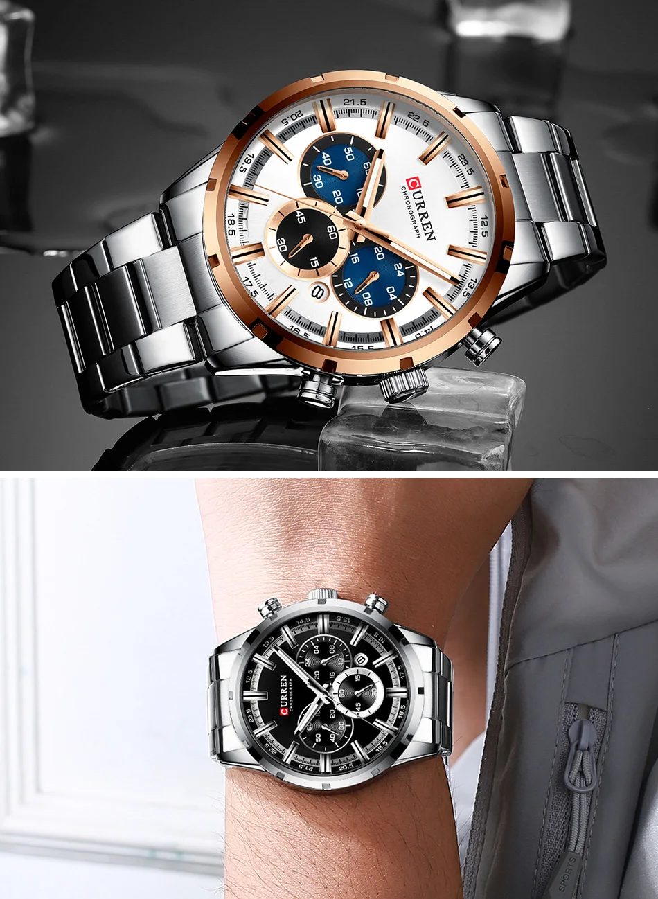 Часы мужские кварцевые из нержавеющей стали, с хронографом