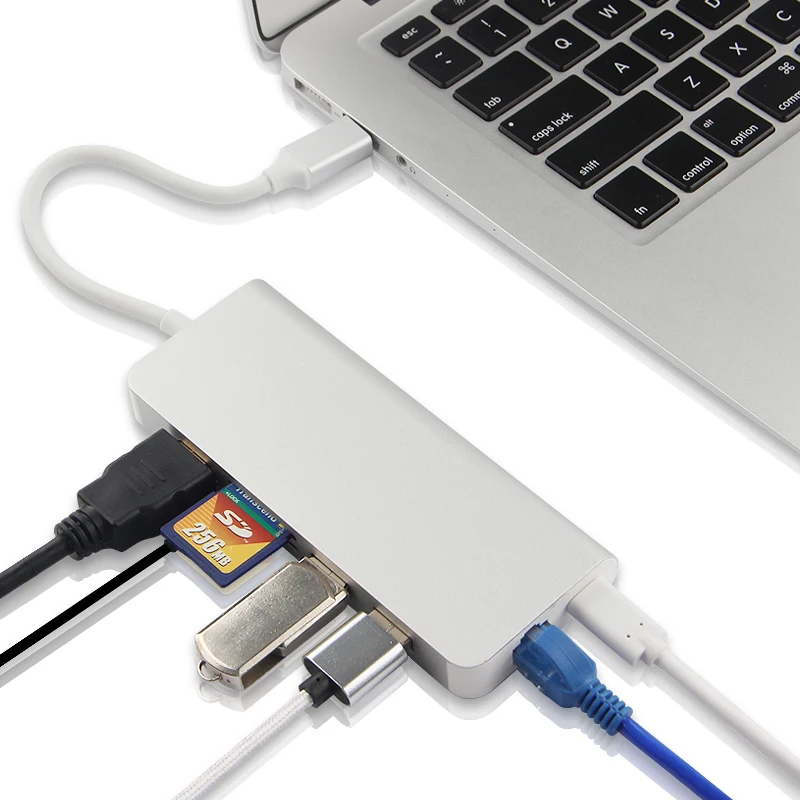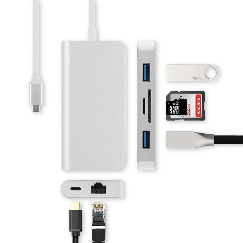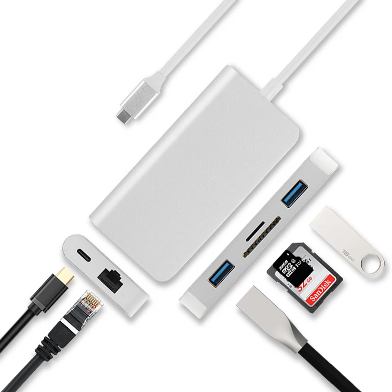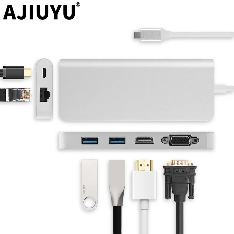 USB-концентратор AJIUYU, док-станция типа C Thunderblt 3, мультипортовый конвертер HDMI VGA RJ45, USB 3,0 PD, разветвитель, аксессуары, карта