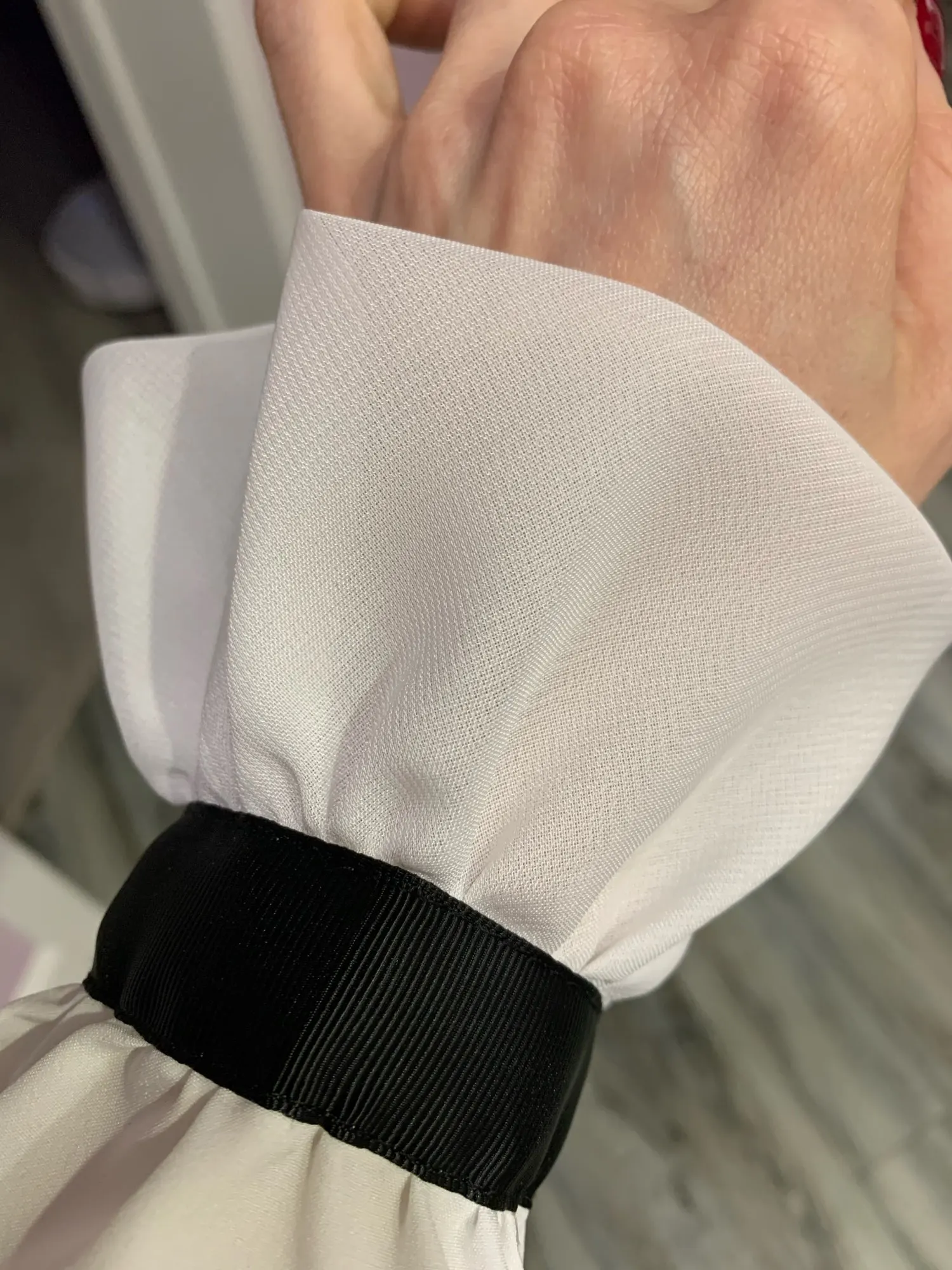 Кофта хорошего качества. Ткань белая не мнётся и не теряет цвет. Легкая. Не теплая. Вроде не электризуется. При стирке черные полоски не красят.