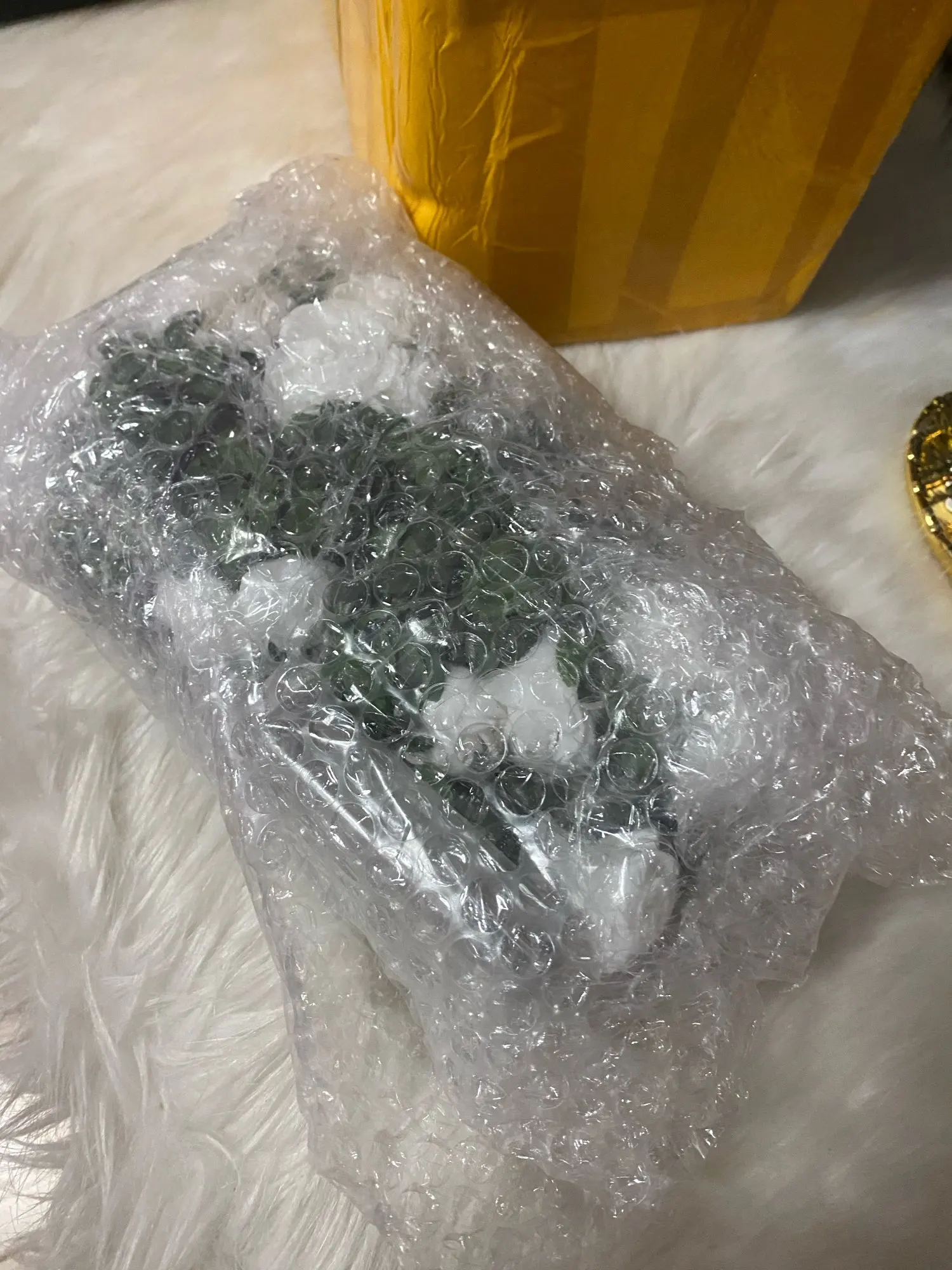 Omg!! Im so happy!! It comes packaged nicely and the delivery was fast! The roses are pure white and looks exactly like picture! The leaves looks slightly artificial (it’s artificial anyways) but the overall look is so pretty and so nice!! The light has 2 settings too - 1 blinks 1 is normal light.