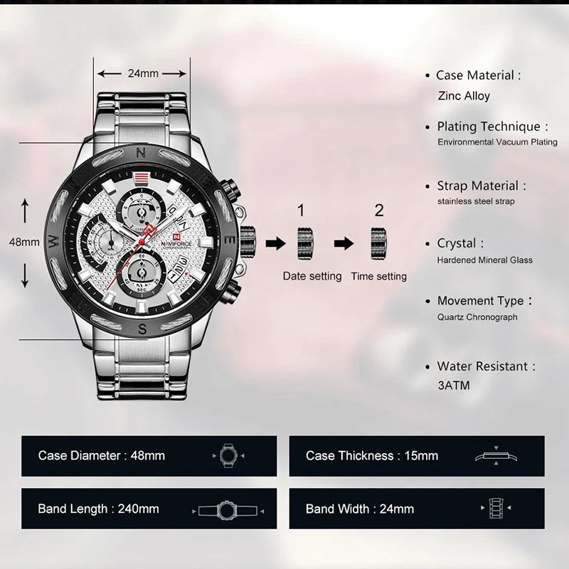 Часы NAVIFORCE мужские, деловые, армейские, кварцевые