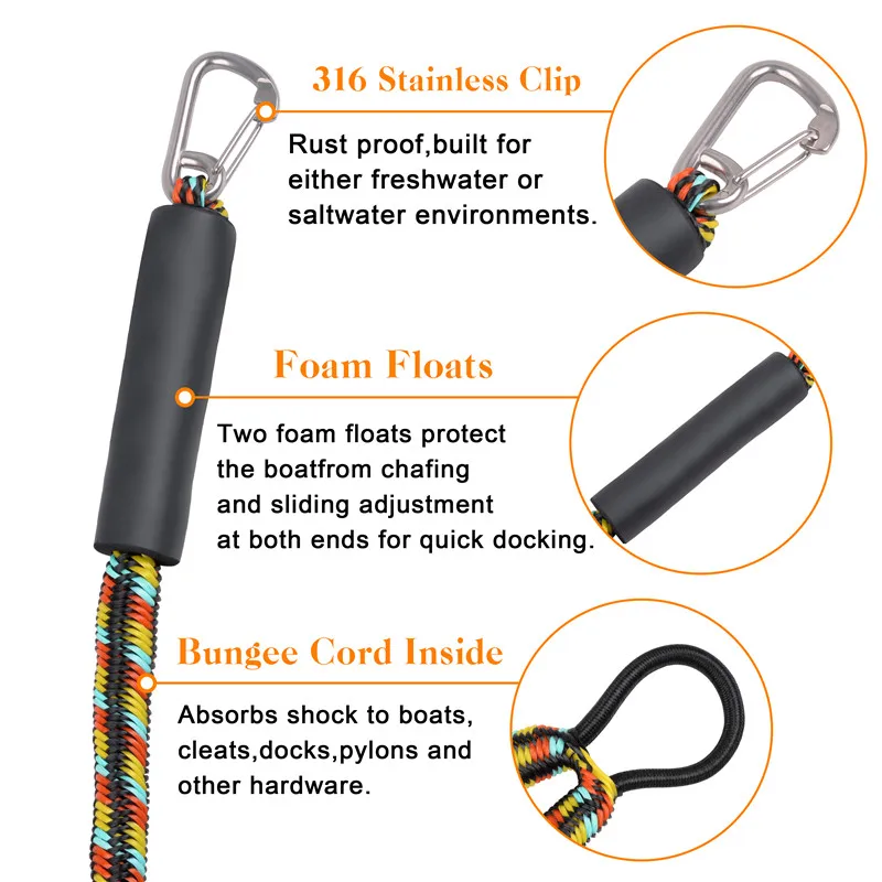 Размер:Dia-3/8 дюймов L-4ft,Dia-3/8 дюймов L-5ft,Dia-3/8 дюймов L-6ftМатериал: Полиэтиленовая леска, зажим из нержавеющей стали, эластичный шнурОсобенность:1. Мощная загрузка: нагрузка до 4000 фунтов2. Использование в соленой и пресной воде: изготовлено из полиэтилена, обеспечивает большую прочность к загрузке и соленой воде и солнечному свету. Также с зажимом из нержавеющей стали 316.3. Защитный поплавок из пеноматериала: предотвращает натирание вашей лодки при быстрой стыковке.4. Идеальная Производительность: более высокая растяжимость и амортизацияПримечание: измерения могут иметь некоторые ошибки, пожалуйста, не обращайте на это внимания. Спасибо