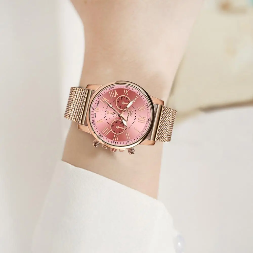 Часы женские из розового золота, полностью стальные, наручные, 2021