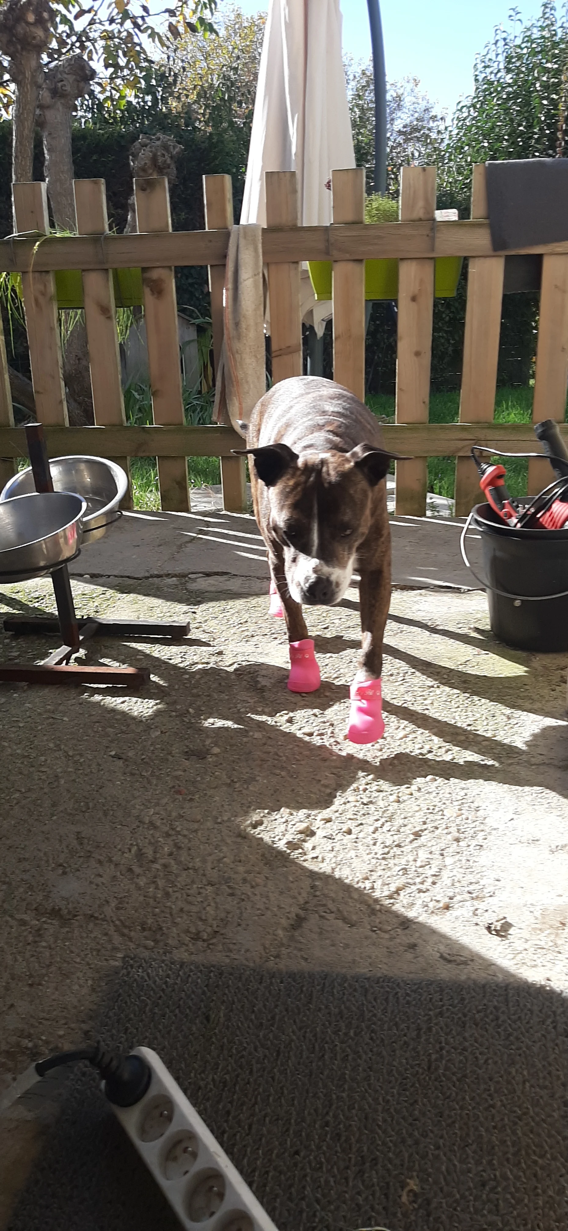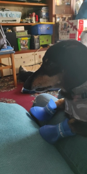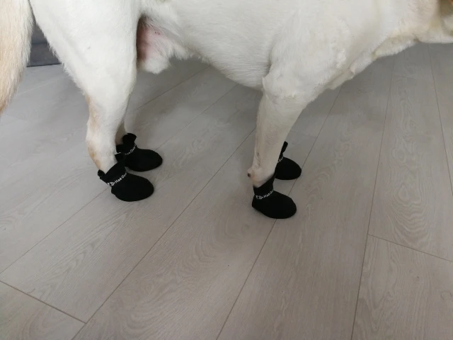 Обувь хорошо служит моей собаке, но будьте осторожны, чтобы не оставлять долго, потому что они потеют ноги и материал водонепроницаемый.
