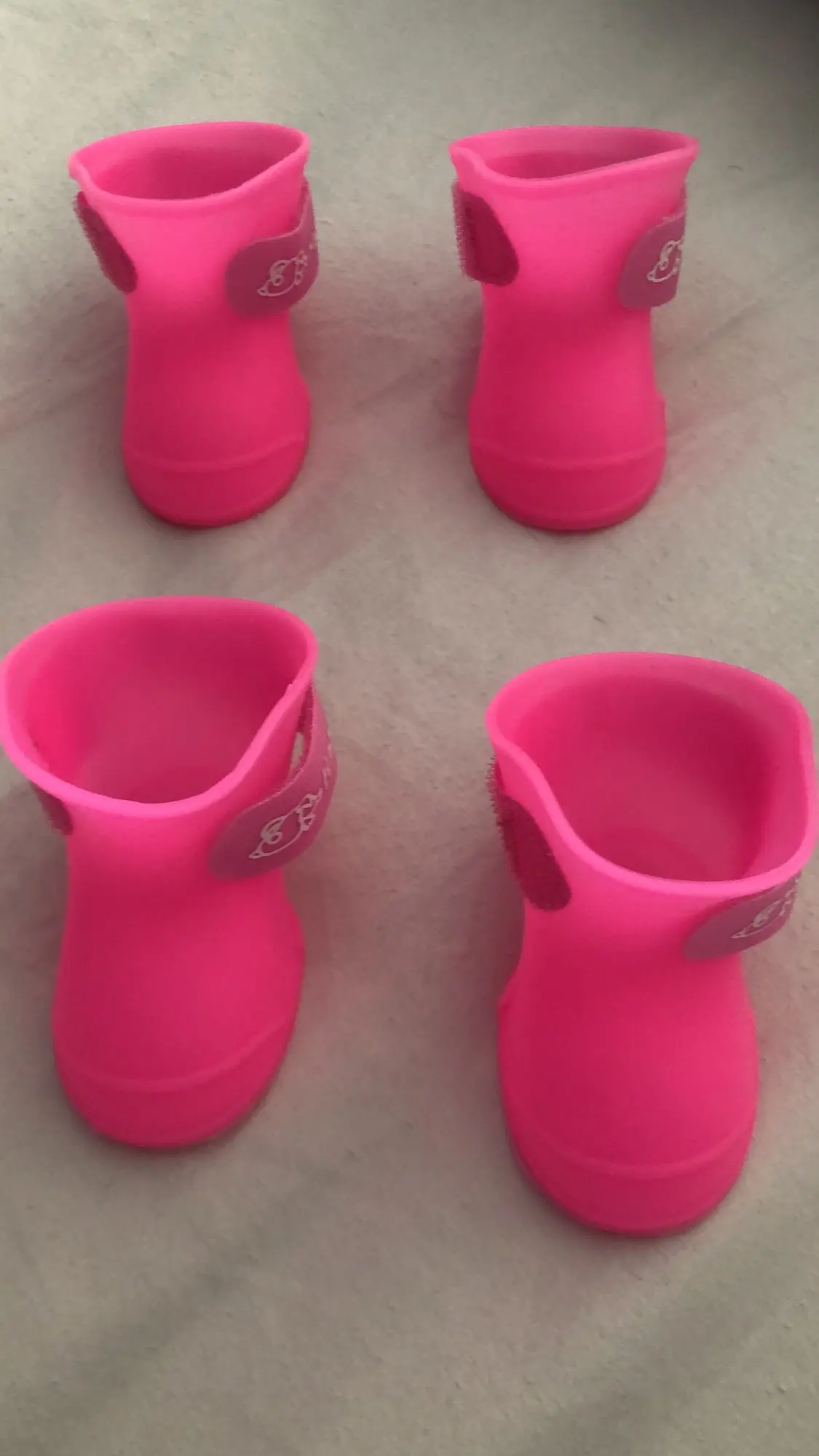 Обувь очень красивая, на этот раз я сделал правильный размер У моей собаки нет следов от этих туфель, но я могу понять, почему раньше никогда не носила Но они сделаны хорошо и действительно милые Может быть, я хотел бы использовать резинку вместо клея, но выглядит отлично