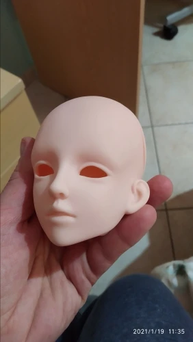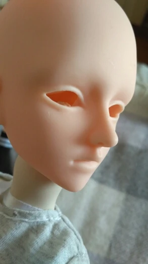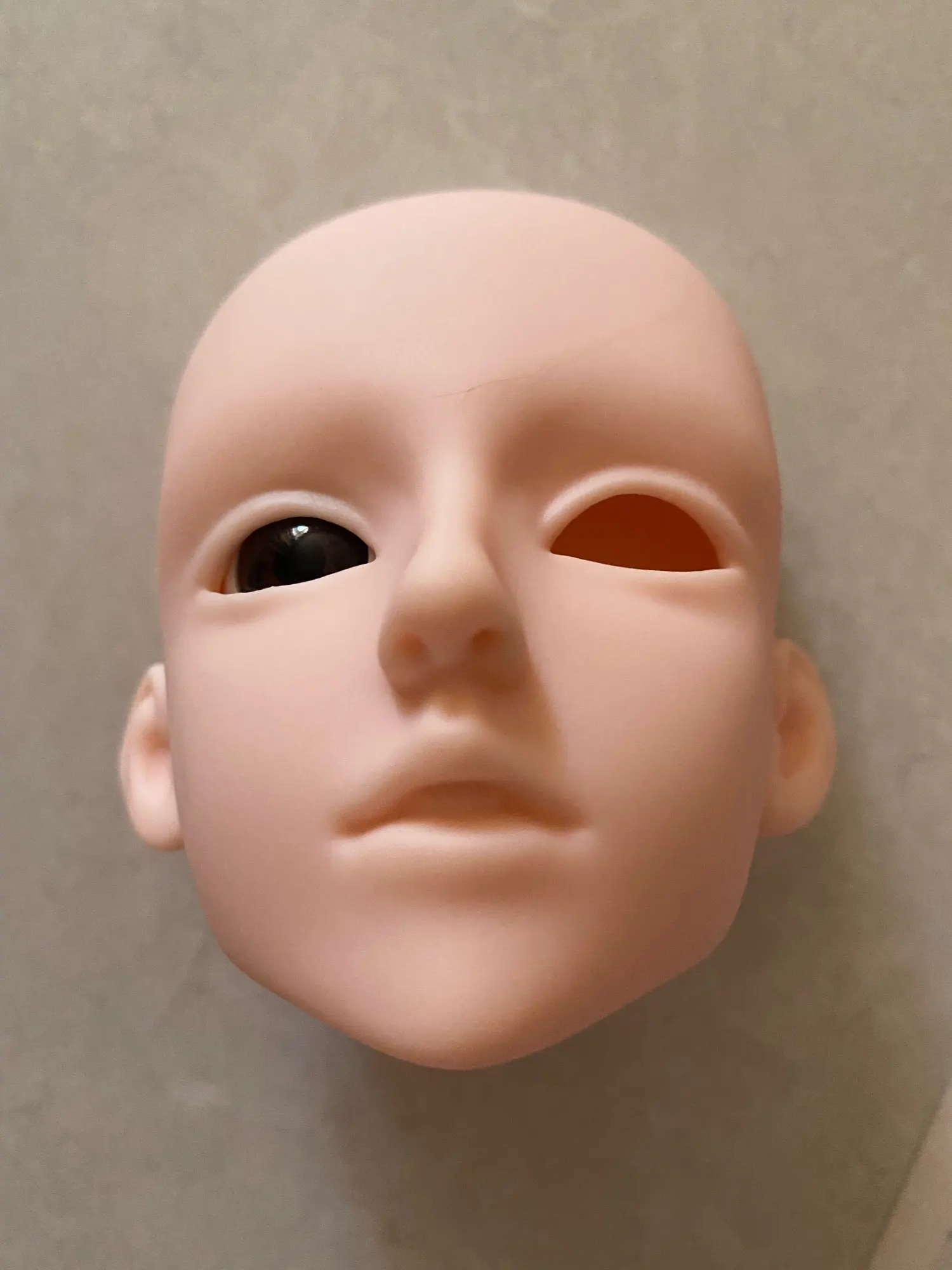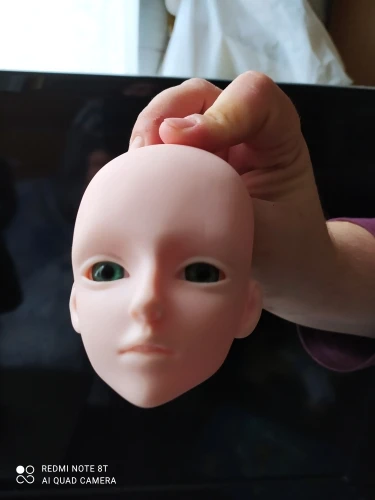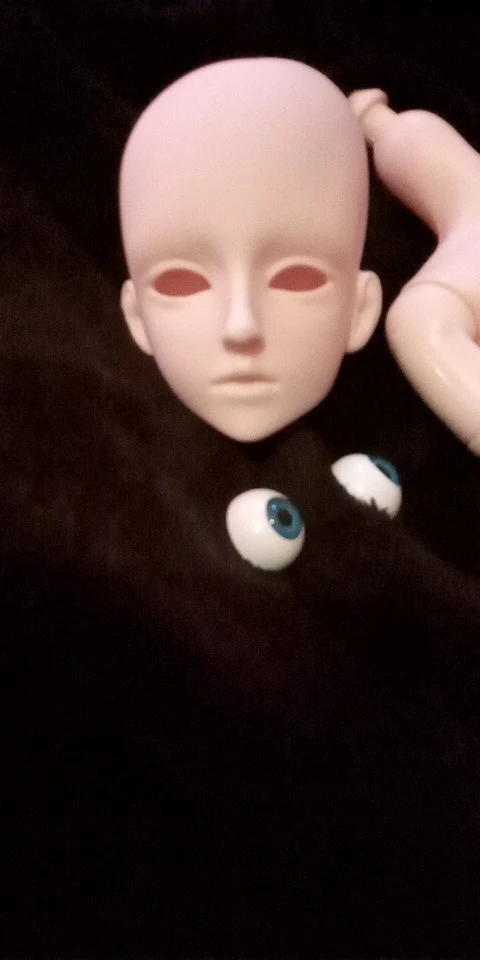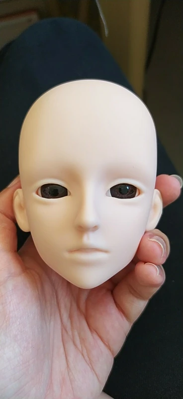 Милая голова, хотя она продается как мальчик, она не является заметной мужской, и я буду использовать ее для куклы девочки. Отправленные глаза кажутся слишком большими, но в любом случае я буду использовать другие глаза. Виниловый цвет соответствует женскому телу, которое я купил в этом магазине.