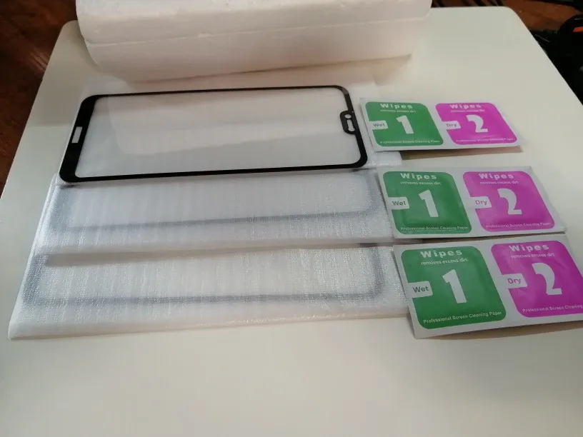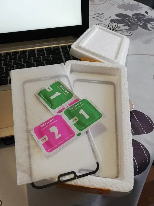 Доставка 17 дней в объединённом заказе. Ещё не клеила, но уже не нравится то, что чёрный контур по бокам закрывает экран! Экран становится меньше. Упаковка обычная для стёкол, в пенопластовую коробку.