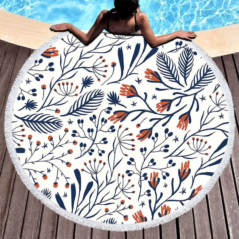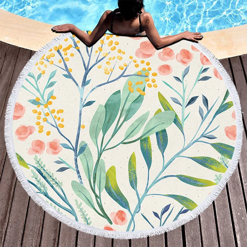 Пляжное полотенце из микрофибры Strand laken, большое круглое пляжное полотенце с цветами, летнее полотенце с кисточками, коврик для пикника и йоги, одеяло, ковер