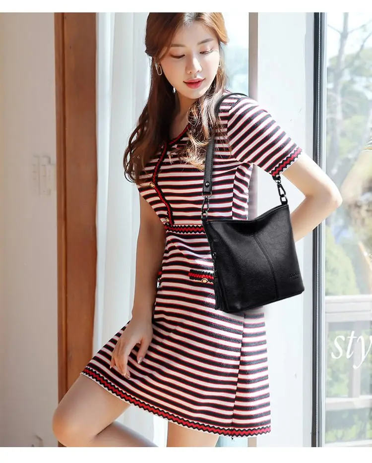Маленькая женская сумка через плечо, из мягкой кожи, с кисточками, ...
