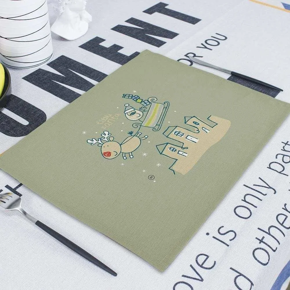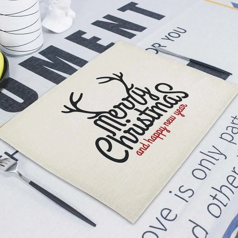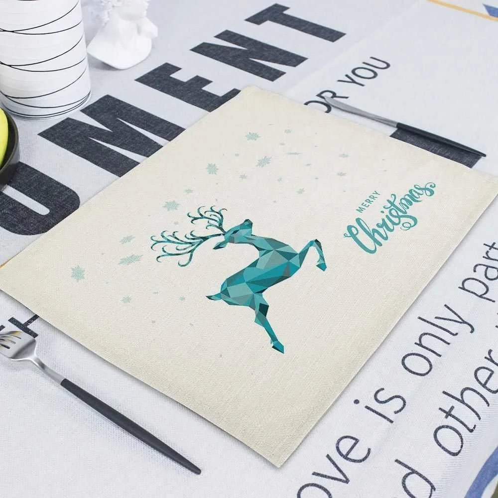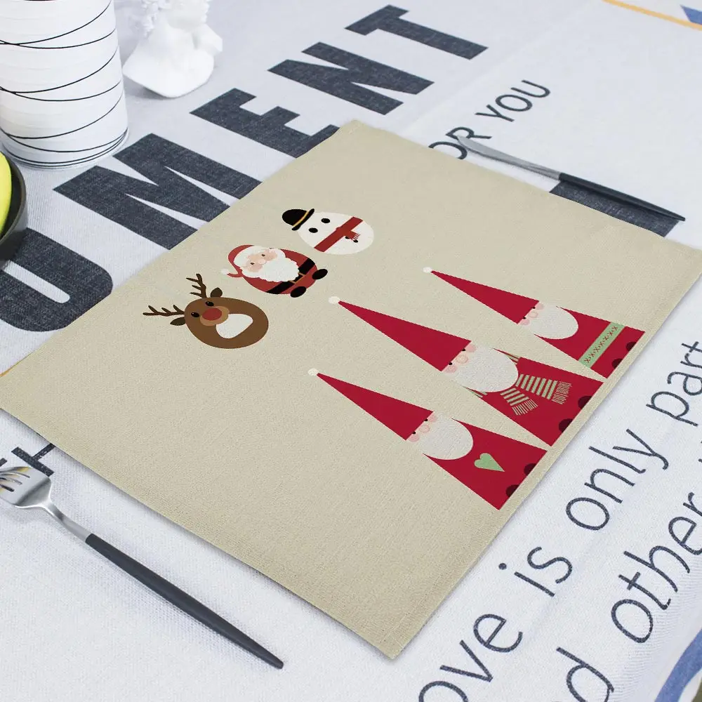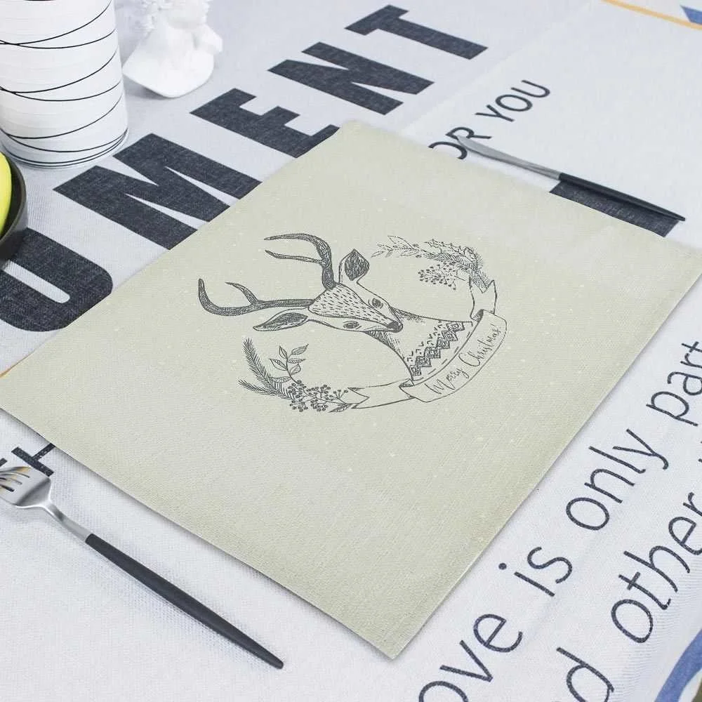 Индивидуальная скатерть Рождественский Настольный коврик чашка с оленем, коврик для чашки 42*32 см, льняной принт, коврик для обеденного стола, кружка, подставки, салфетки