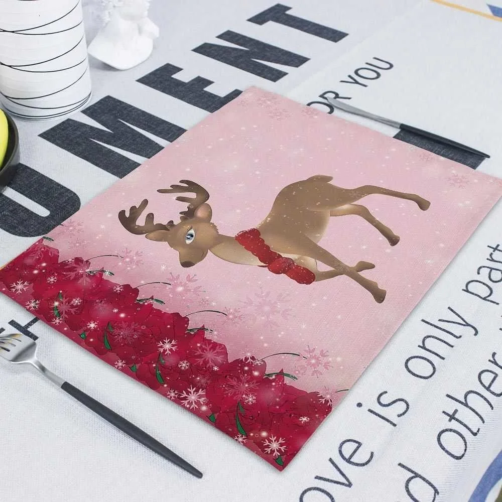 Индивидуальная скатерть Рождественский Настольный коврик чашка с оленем коврик чашка коврик 42*32 см льняная печать обеденный стол коврик кружка подставки салфетки