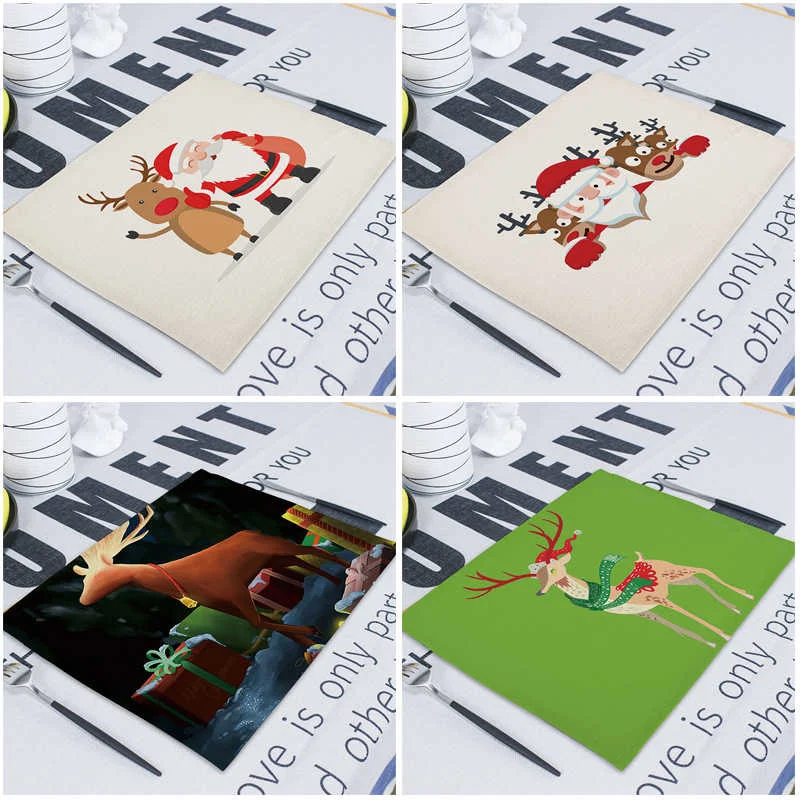 Рождественские коврики, коврики для стола с Санта-Клаусом, подставки, настольные Коврики для обеденного стола, коврики для стола, салфетки для посуды
