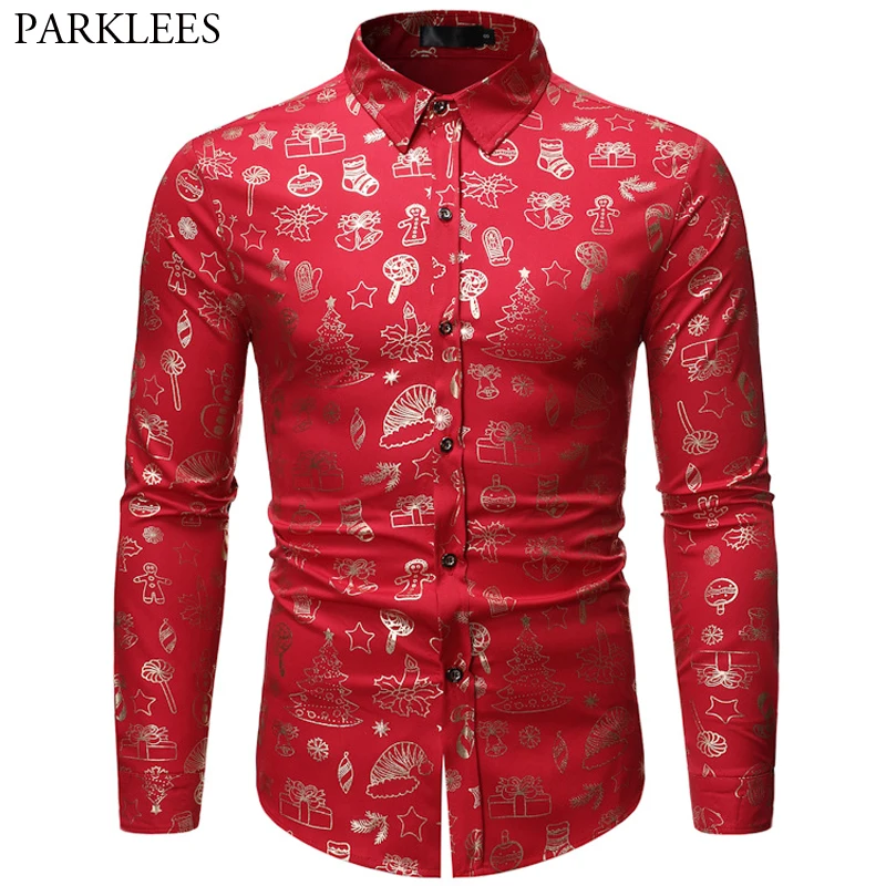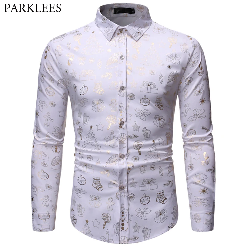 Рубашка мужская приталенная на пуговицах, Рождественская Повседневная, бронзовая, с длинным рукавом, с принтом, цвет черный