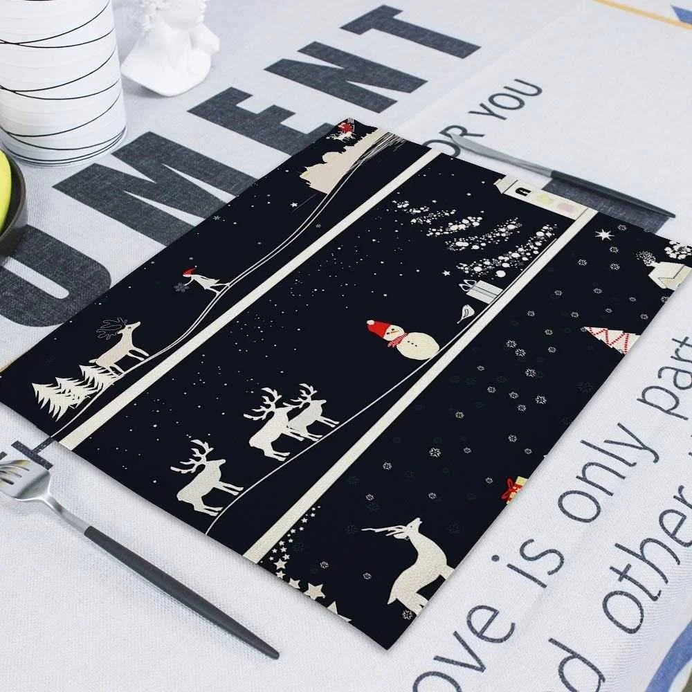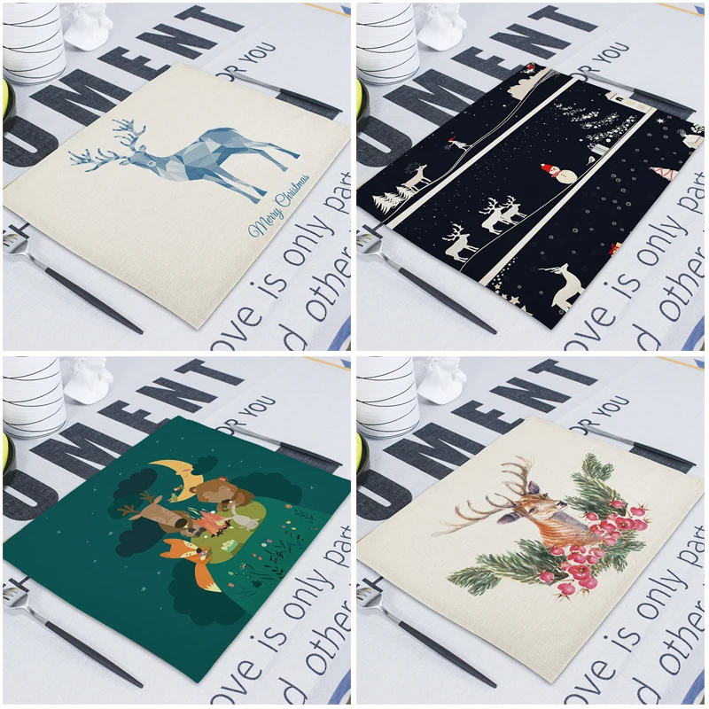 Рождественский Настольный коврик Elk индивидуальные подставки, набор подставок, Подарочный коврик на стол, подставка под чашку, коврики для обеденного стола