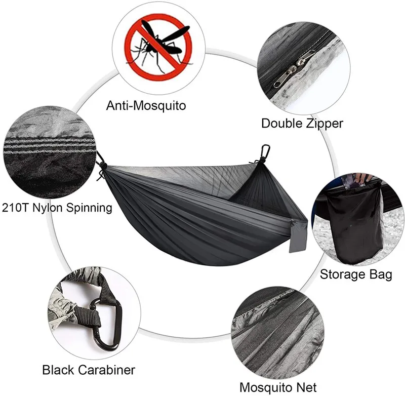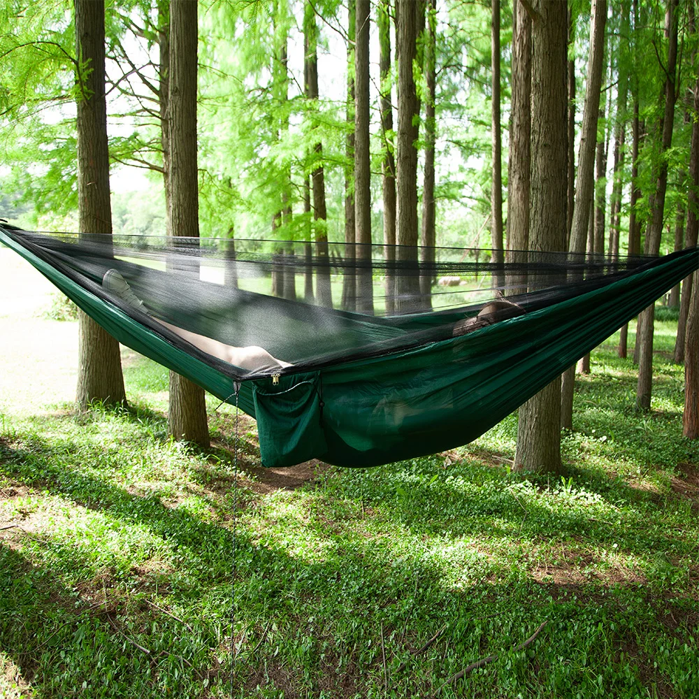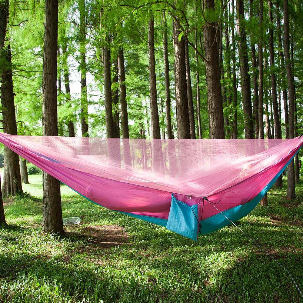 Качественный гамак для кемпинга с сеткой для комаров-вы можете спать на улице безопаснее и хорошо спать всю ночь. Легкий и компактный-профессиональный Прочный и легкий дышащий тканый нейлон 210T., тройная Строчка и качественный рисунок обеспечивают надежность для снижения давления. Так что вы можете оставаться комфортно для отличного ночного сна.