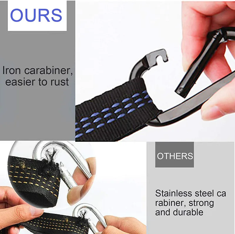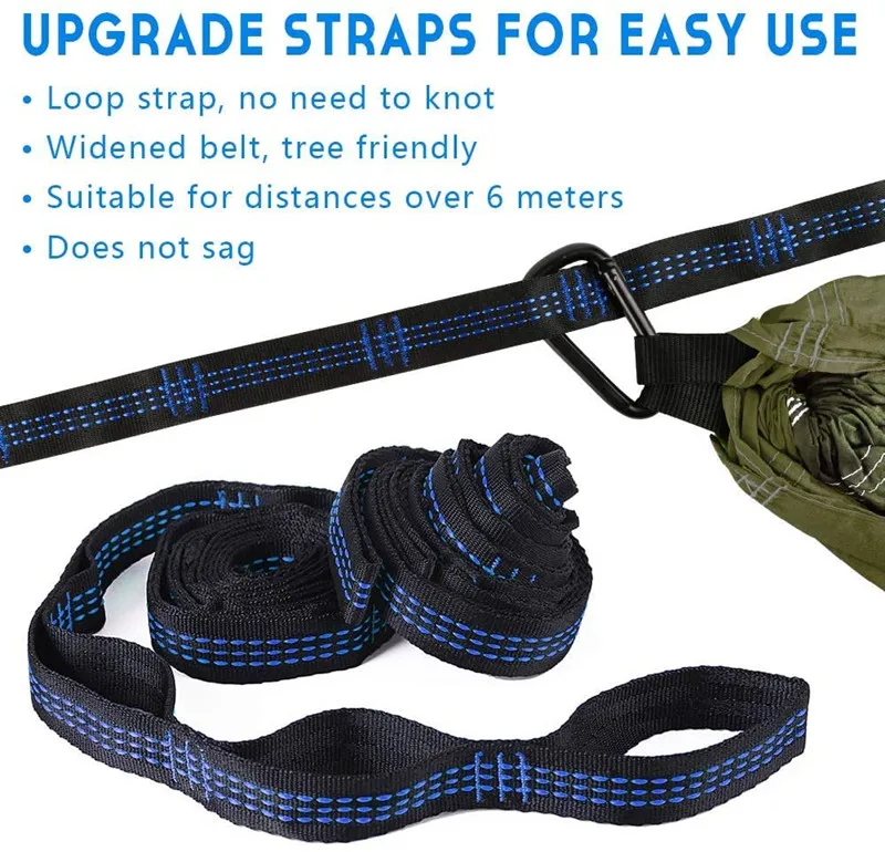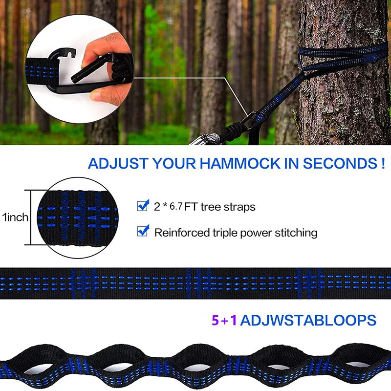 Легко установить портативный гамак для кемпинга. Это займет менее 3 минут, чтобы повесить ваш портативный Кемпинг гамак на основной ветке сильного дерева с помощью веревки, полосы и карабины без каких-либо инструментов, только два дерева. И наши ремешки на дереве широкие, они не оставят следов затягивания на стволе, это не повредит его. Парашютный гамак также может широко использоваться в различных видах деятельности, таких как кемпинг, туризм, путешествия. Кроме того, это также хорошая альтернатива палатке, спальной площадке, коврику, качелям, колыбели и т. д. таким образом, вы можете использовать гамак с парашютом, чтобы легко расслабиться во время многих видов деятельности.