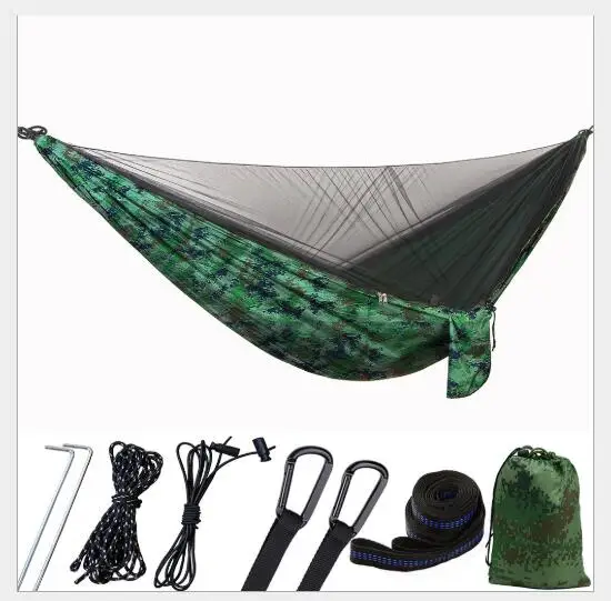 Туристический гамак с москитной сеткой, двойной гамак, из парашютной ткани, для походов и путешествий