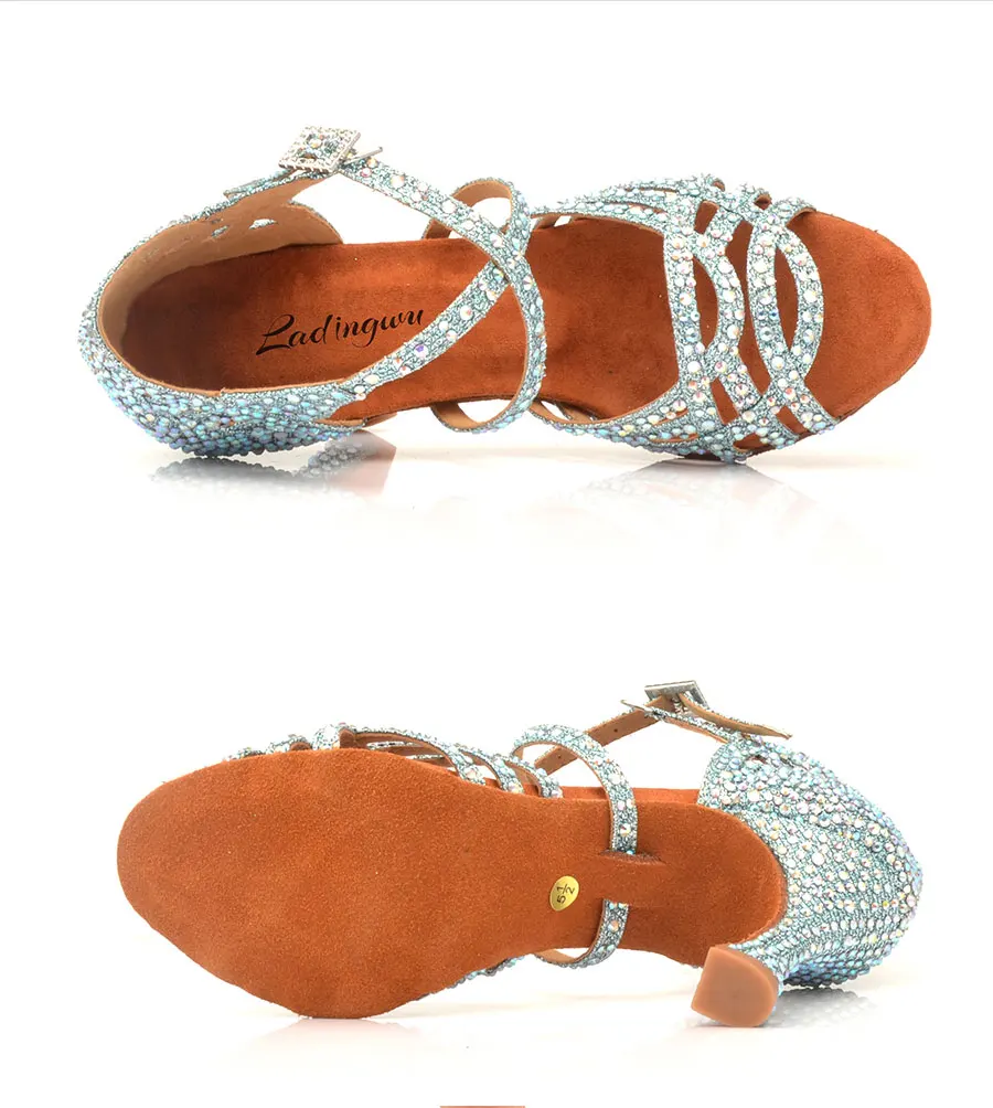 Ladingwu Стразы для латиноамериканских танцев, танцевальная обувь для танцев, бальных танцев, Женский светильник, Синие Блестящие танцевальные туфли