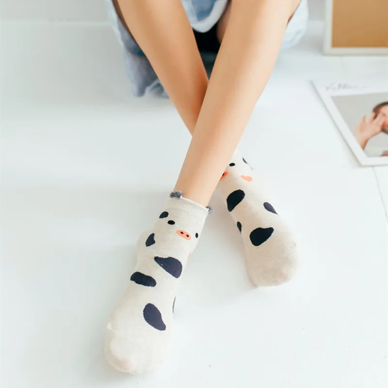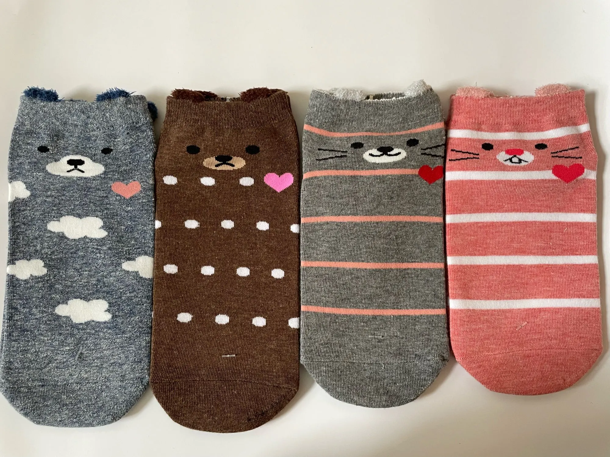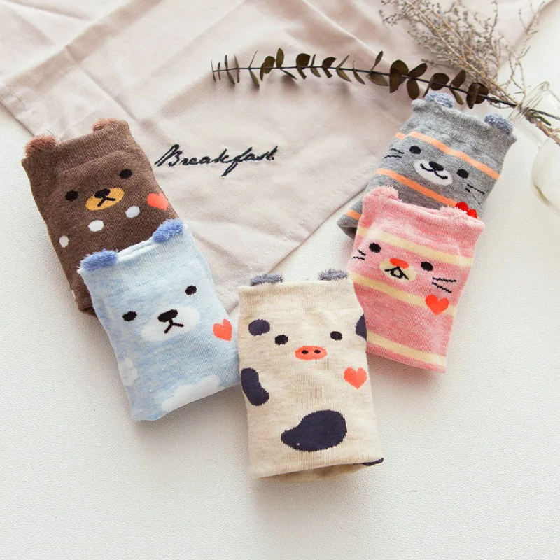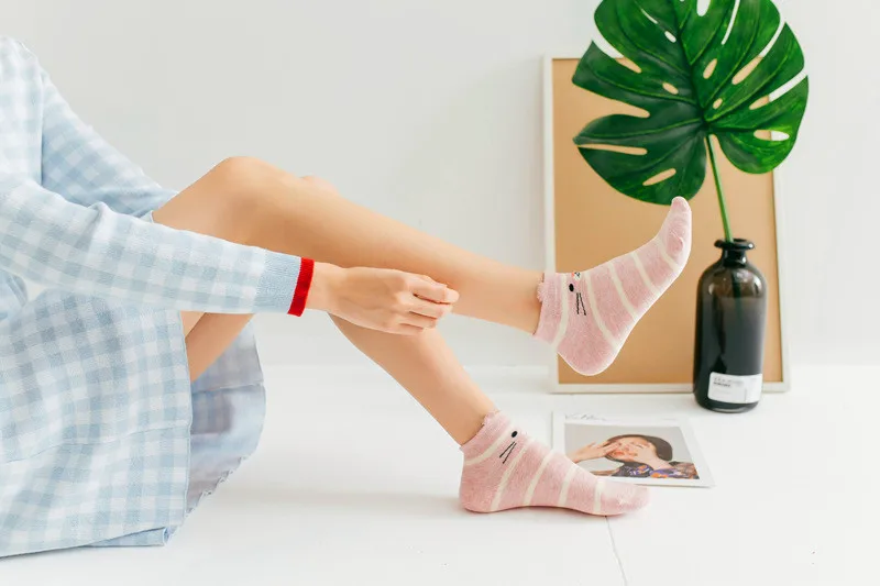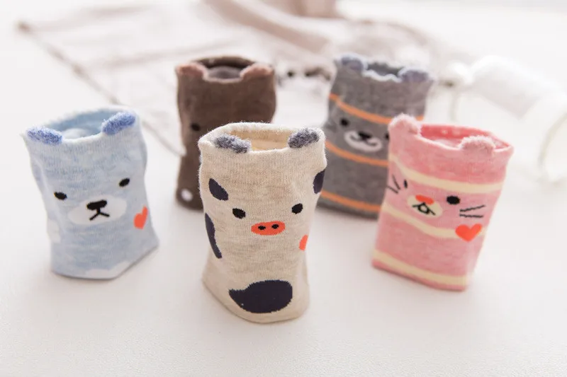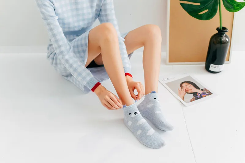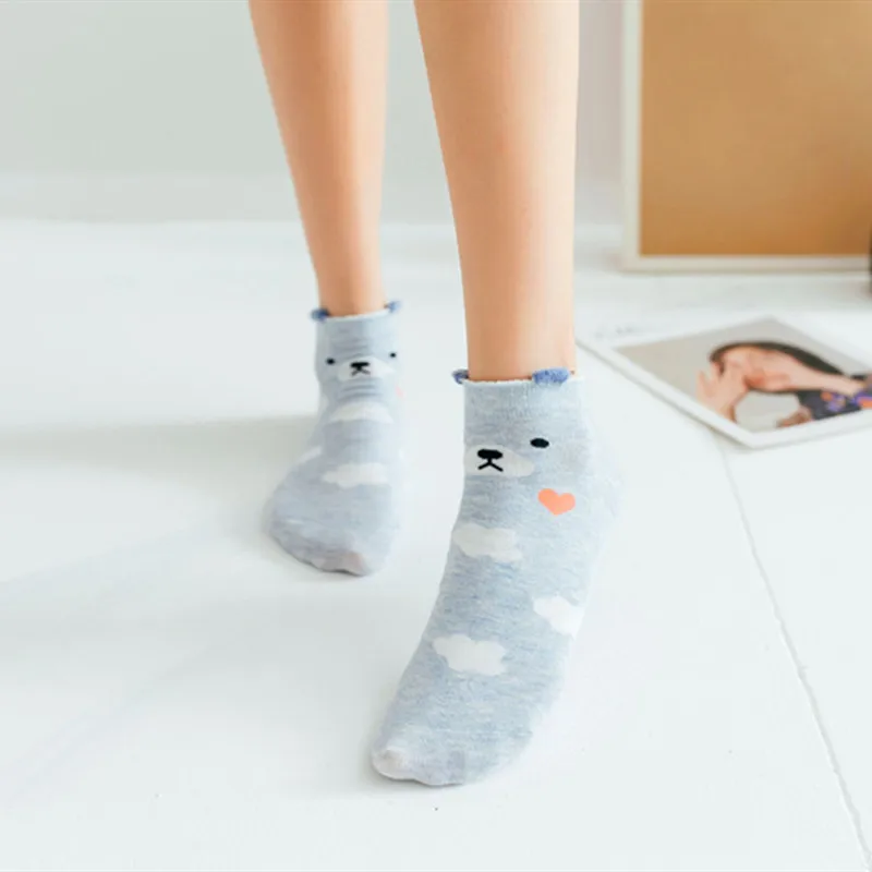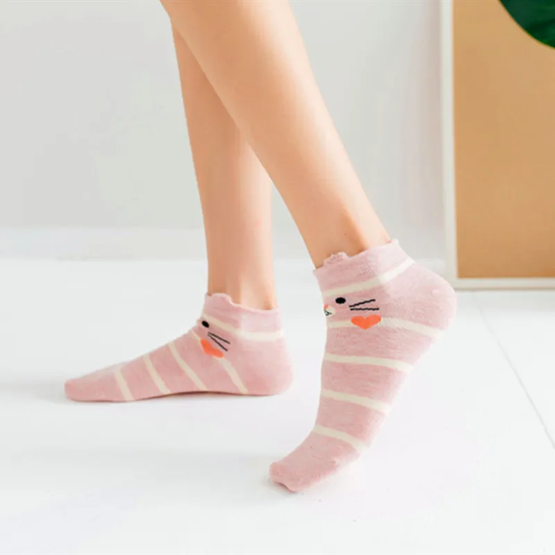 5 пар женских коротких носков, цветные женские весенние низкие носки по щиколотку, летние носки, простые хлопковые носки для девочек, носки-башмачки с мультяшными животными