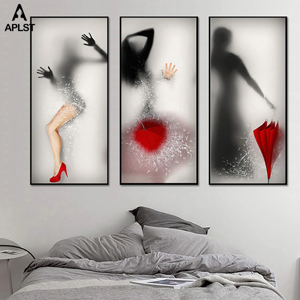 Размытые женские принты и плакаты сексуальные обнаженные девушки зонт для ног разрыв стекло холст картина на стену для гостиной ванной комнаты