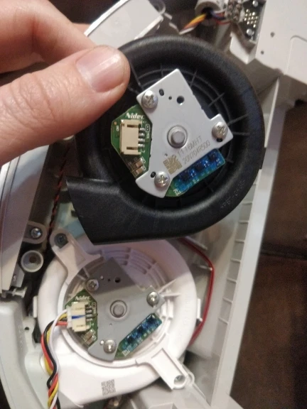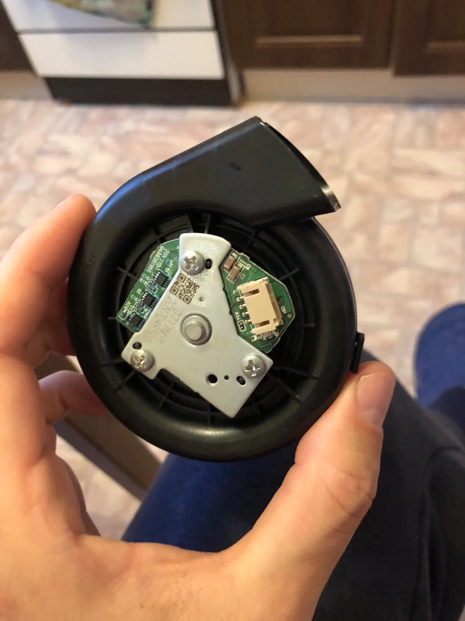 на роботе пылесосе вылезла ошибка 18, не работает турбина. заказал эту с доставкой plus, дошло за 14 дней до краснодара. поставил в робот, все работает. звук немного другой, не сказать что тише или громче, просто другой. пришла черная турбина