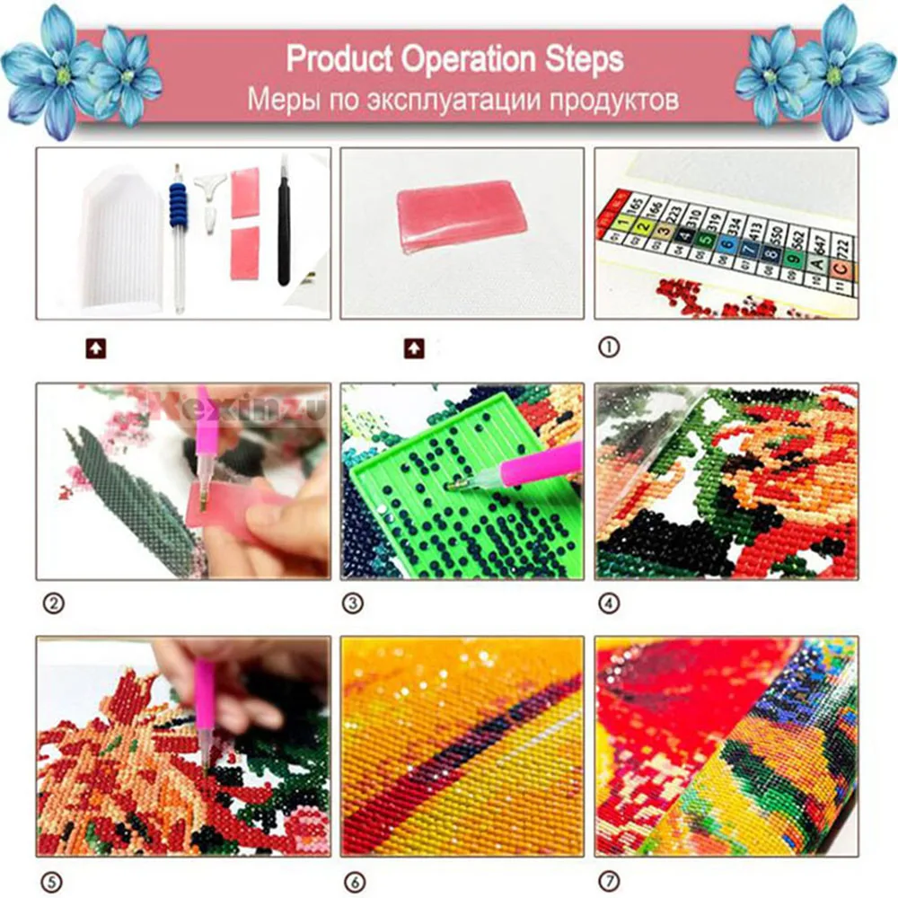 2. Вставьте круглый конец ручки в Дозирующий цемент (нажмите, чтобы сохранить цемент на месте). 3. Используйте круглый конец ручки, чтобы приклеить бриллиант и слегка нажмите, чтобы удалить любой дополнительный цемент. 4. Разорвите частичную пленку и поместите алмаз на холст в соответствии с соответствующим номером. 5. Если вы приклеите алмаз к неправильной области на картине, удалите алмаз пинцетом. 6. После завершения слегка прижмите алмазы рукой или книгой, чтобы убедиться, что алмазы надежно закреплены.