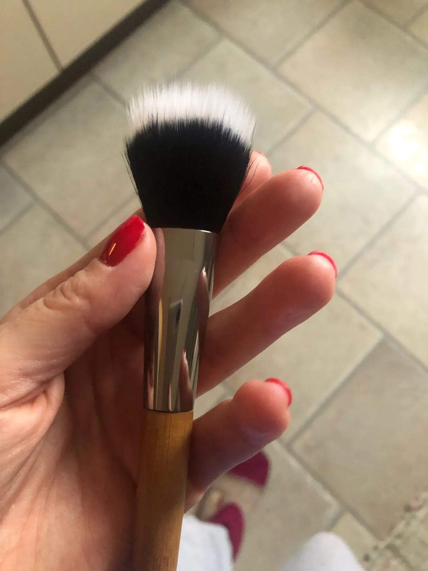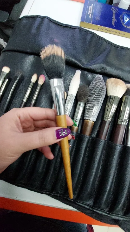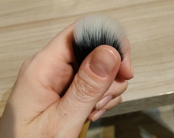 Кисть супер, дуофайбер. Давно такую искала. Доставка 2 недели. Рекомендую к покупке.