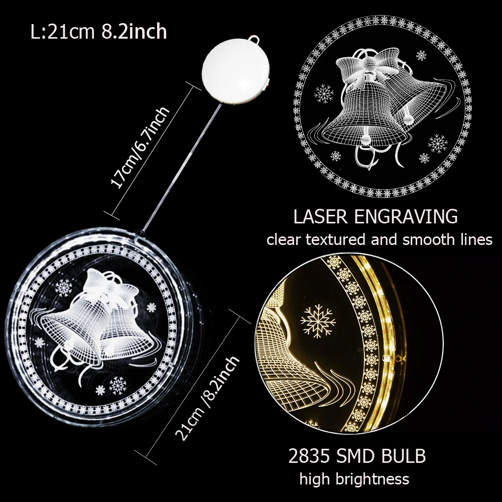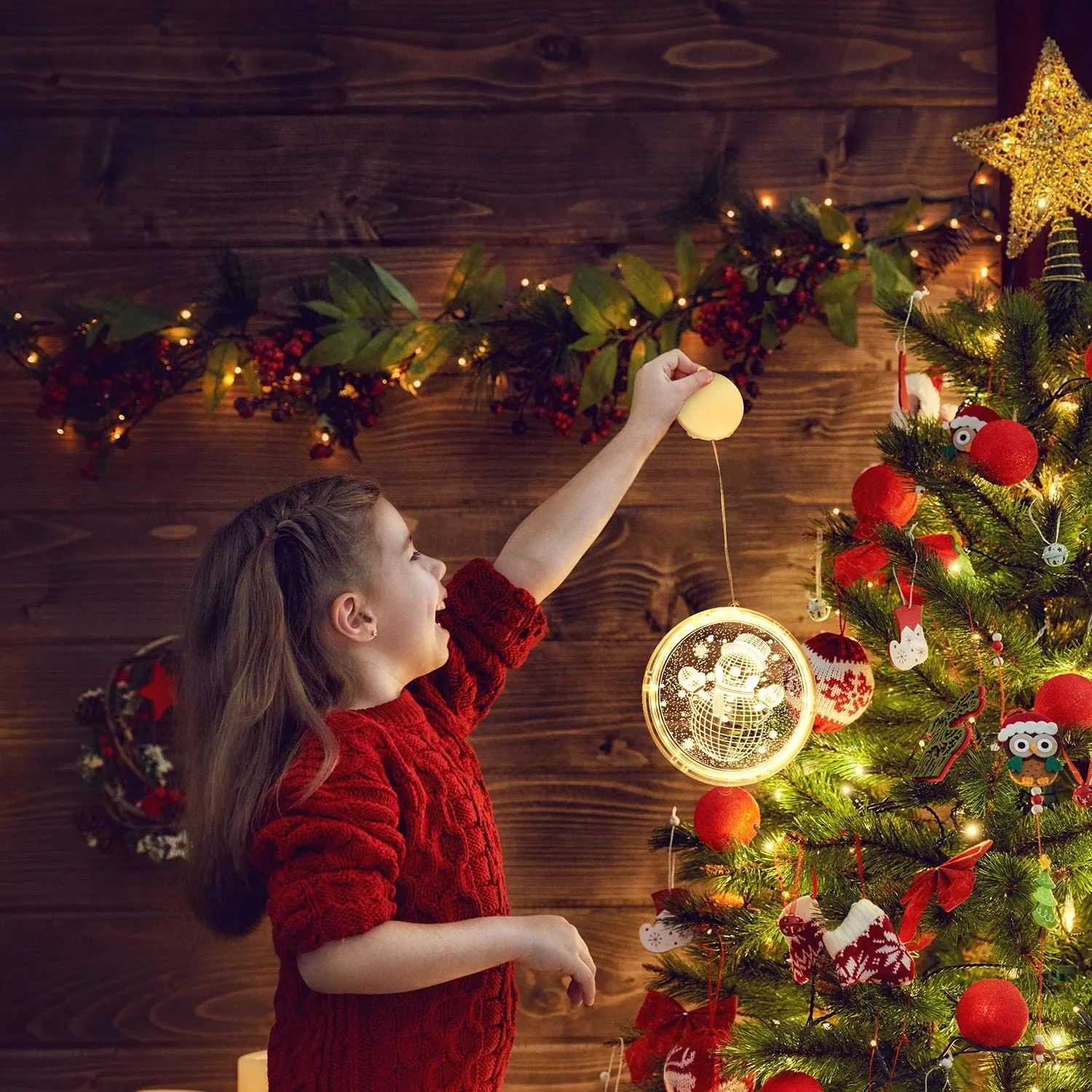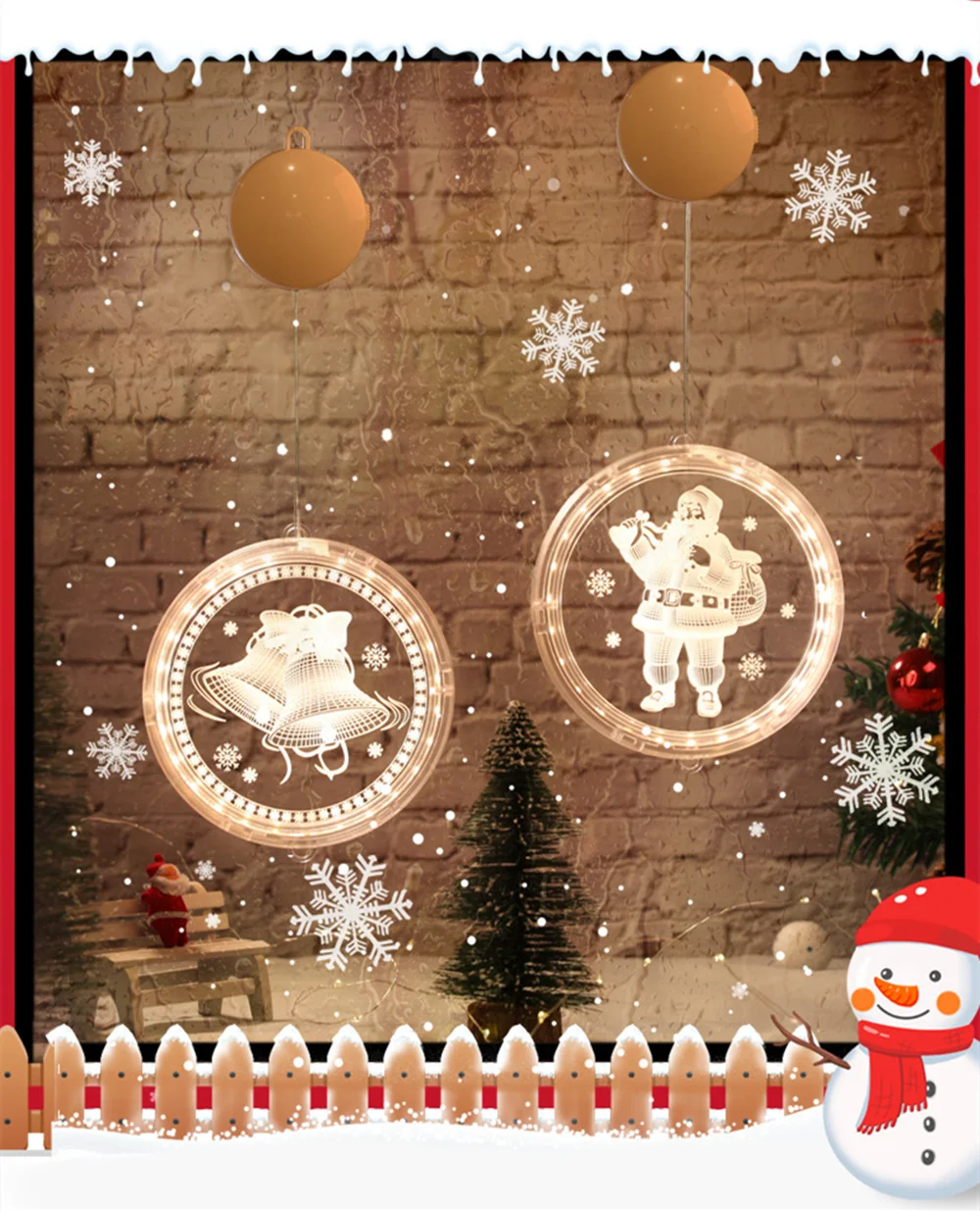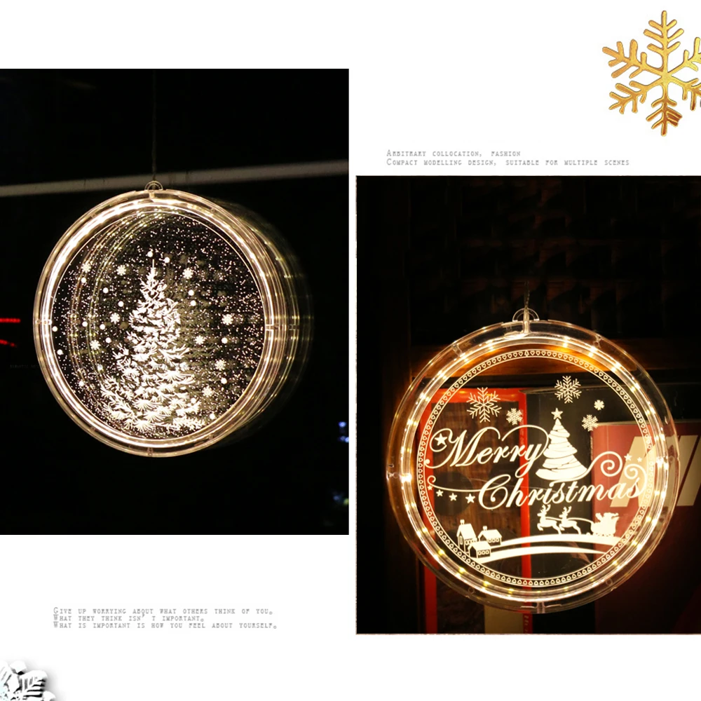 Светодиодный ночник, подвесной Рождественский светильник s, сказочный светильник s, Круглый 3D светильник Санта-Клауса с присоской для двери, окна, праздничное украшение