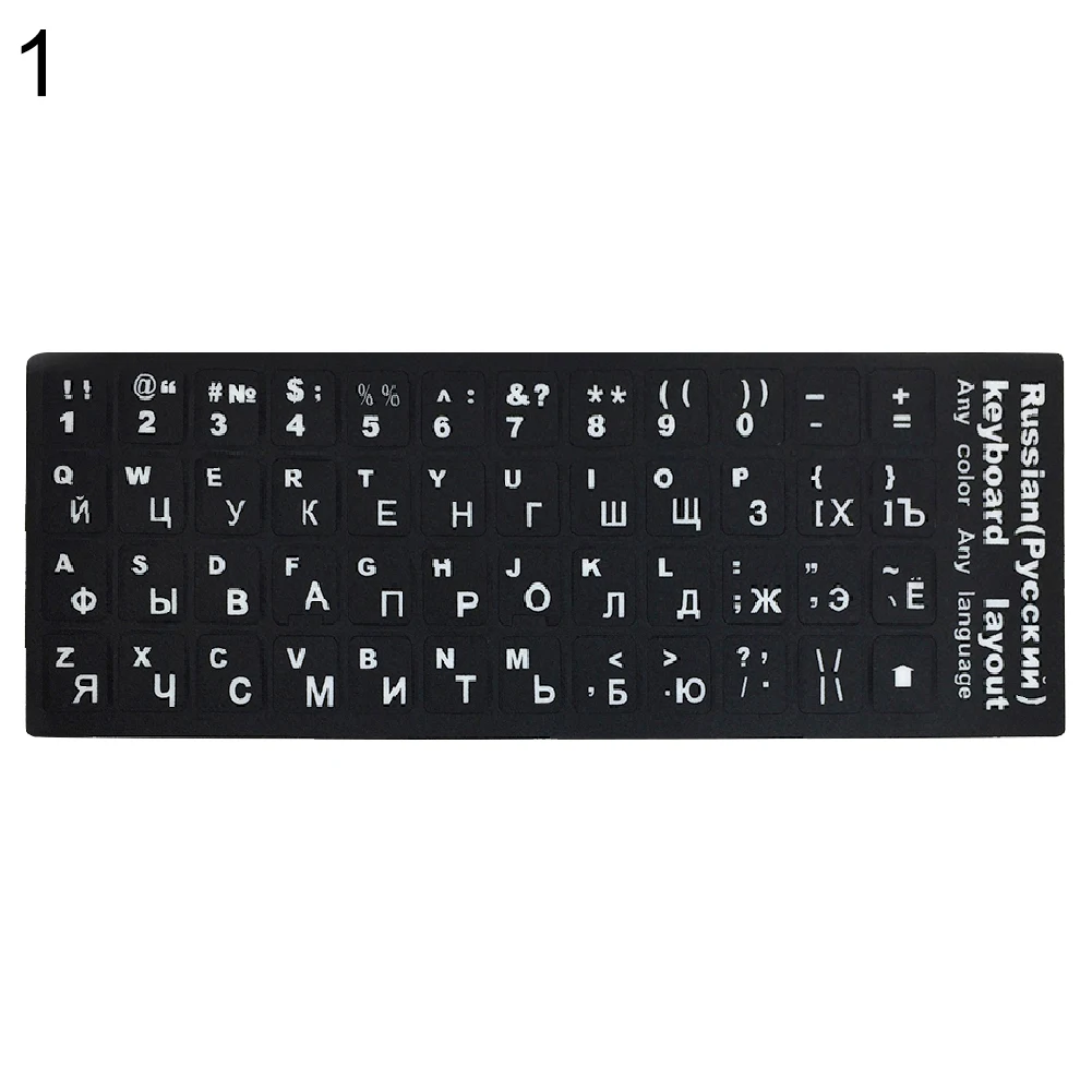 Характеристики:Наклейки на клавиатуру на русском, испанском, английском, французском и других языках, подходят для настольных компьютеров и ноутбуков.Уникальное покрытие защищает от истирания, долговечности.Легко наносится и снимается. Тип: наклейка на клавиатуруМатериал: ПВХДополнительный язык: русский, итальянский, тайский, японский, английский, арабский, корейский, испанский, французский, немецкийОсобенности: легко наносится, защита для ключей, съемныйРазмер: 8 см x 21 см/3,15 "x 8,27" (прибл.) Примечания:Благодаря светильник и экрана Цвет Товара может быть s светильник ly отличается из-за характеристик монитора компьютера.Возможны незначительные отклонения в размерах из-за различных измерений вручную. Посылка включает в себя:1 x наклейка на клавиатуру