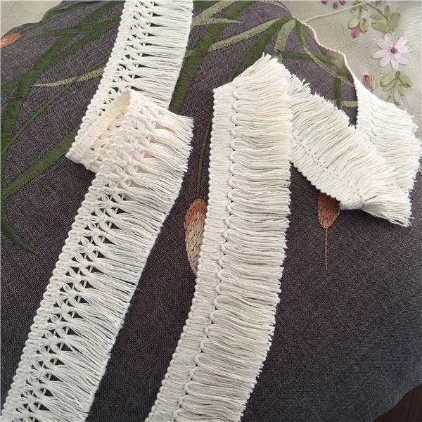 Хлопковая лента с бахромой и кружевной отделкой, ширина 2-6 см, M53S16, цвета слоновой кости, 15 ярдов