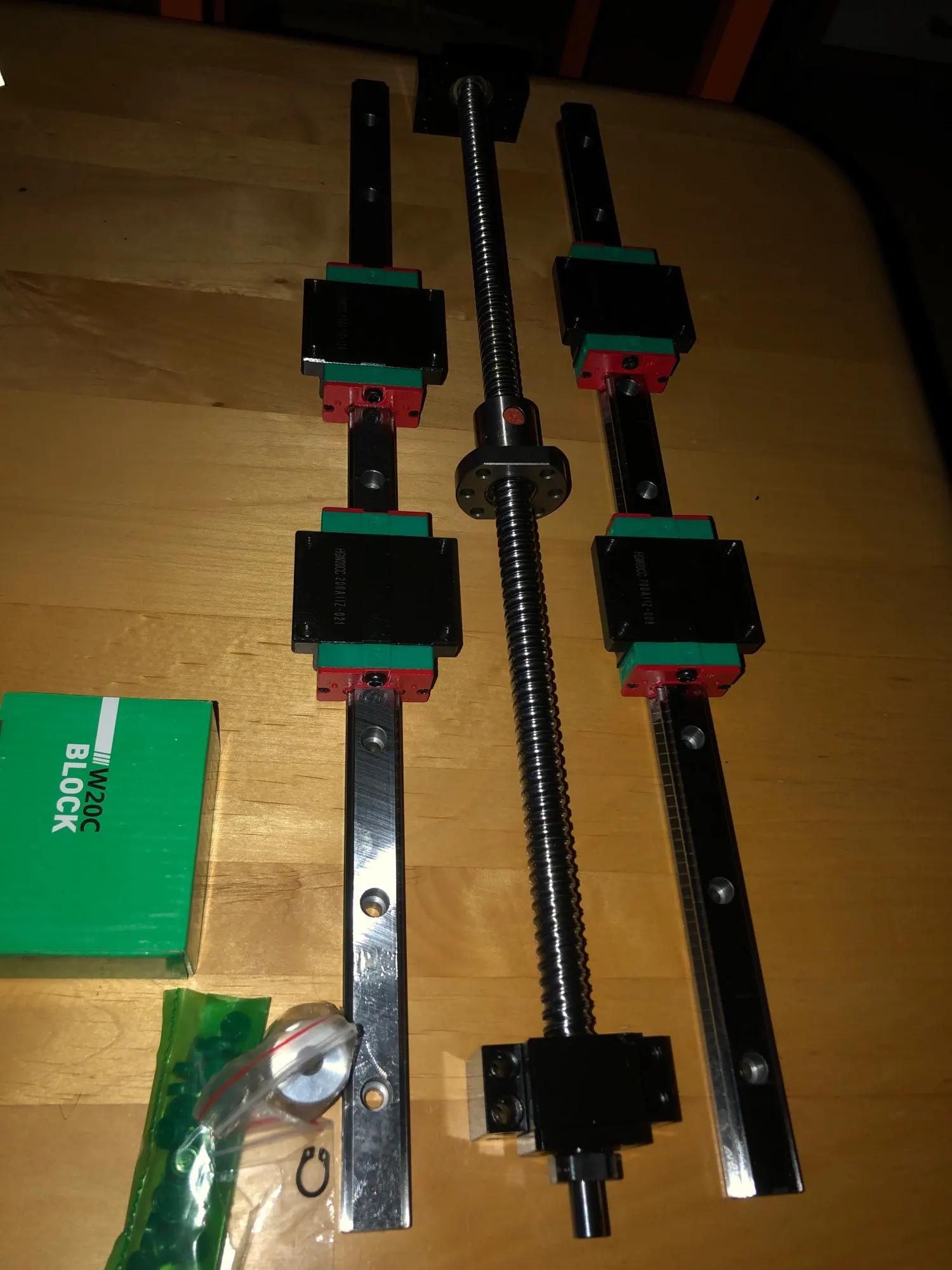 Заказываю второй раз, опять всё хорошо. На этот раз на каретках боковины не зеленые, а черные. Люфтов нет, ход плавный. Но опять всё пришлось перебирать, промывать и смазывать - как будто детали перед смазкой не мыли, местами была грязь внутри (особенно в гайке).
