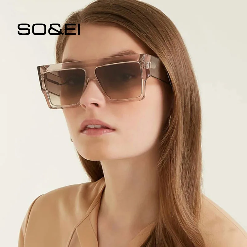 SO EI Ретро негабаритные квадратные градиентные солнцезащитные очки женские Ins Популярные уличные пляжные очки мужские солнцезащитные очки UV400
